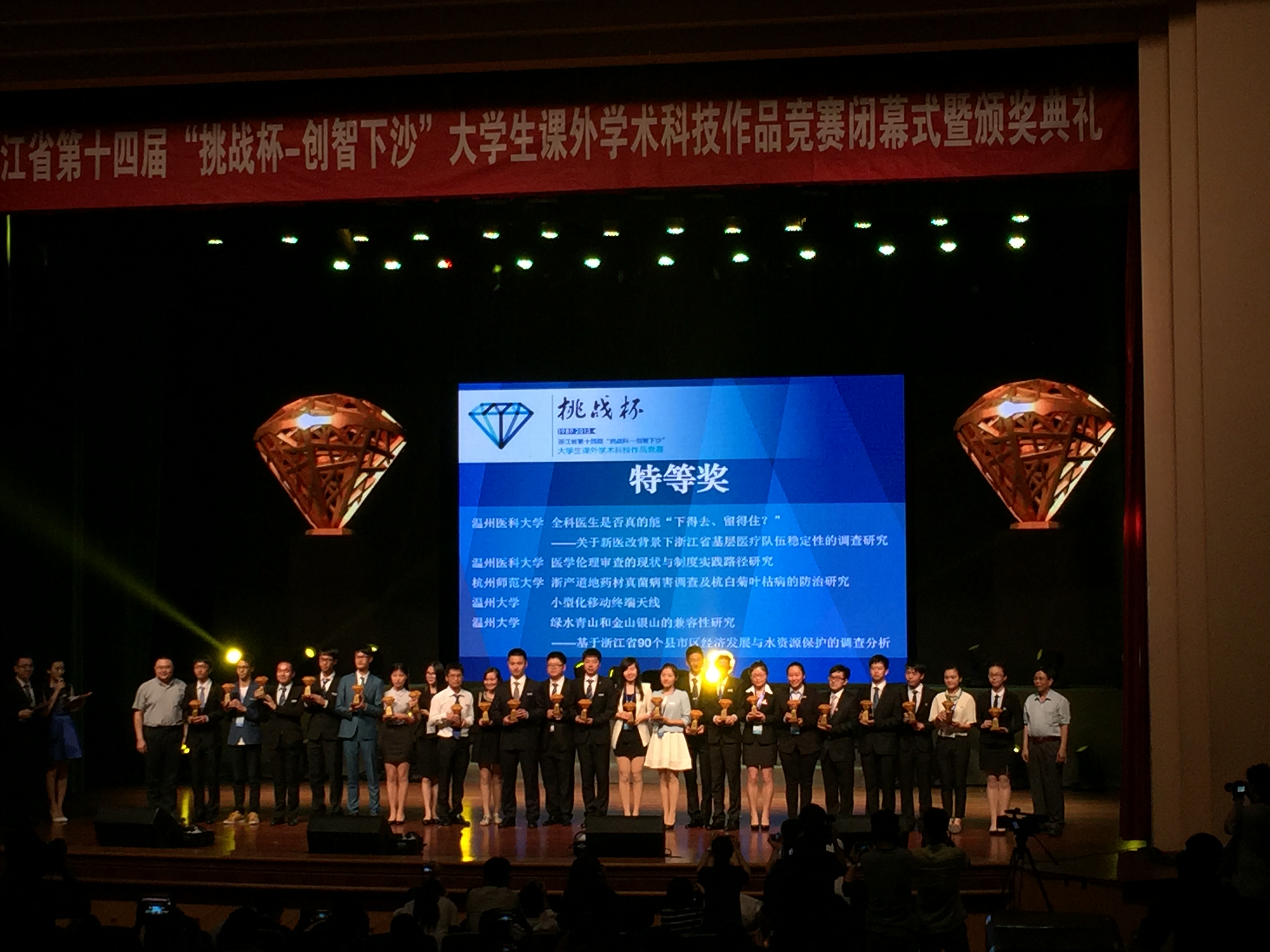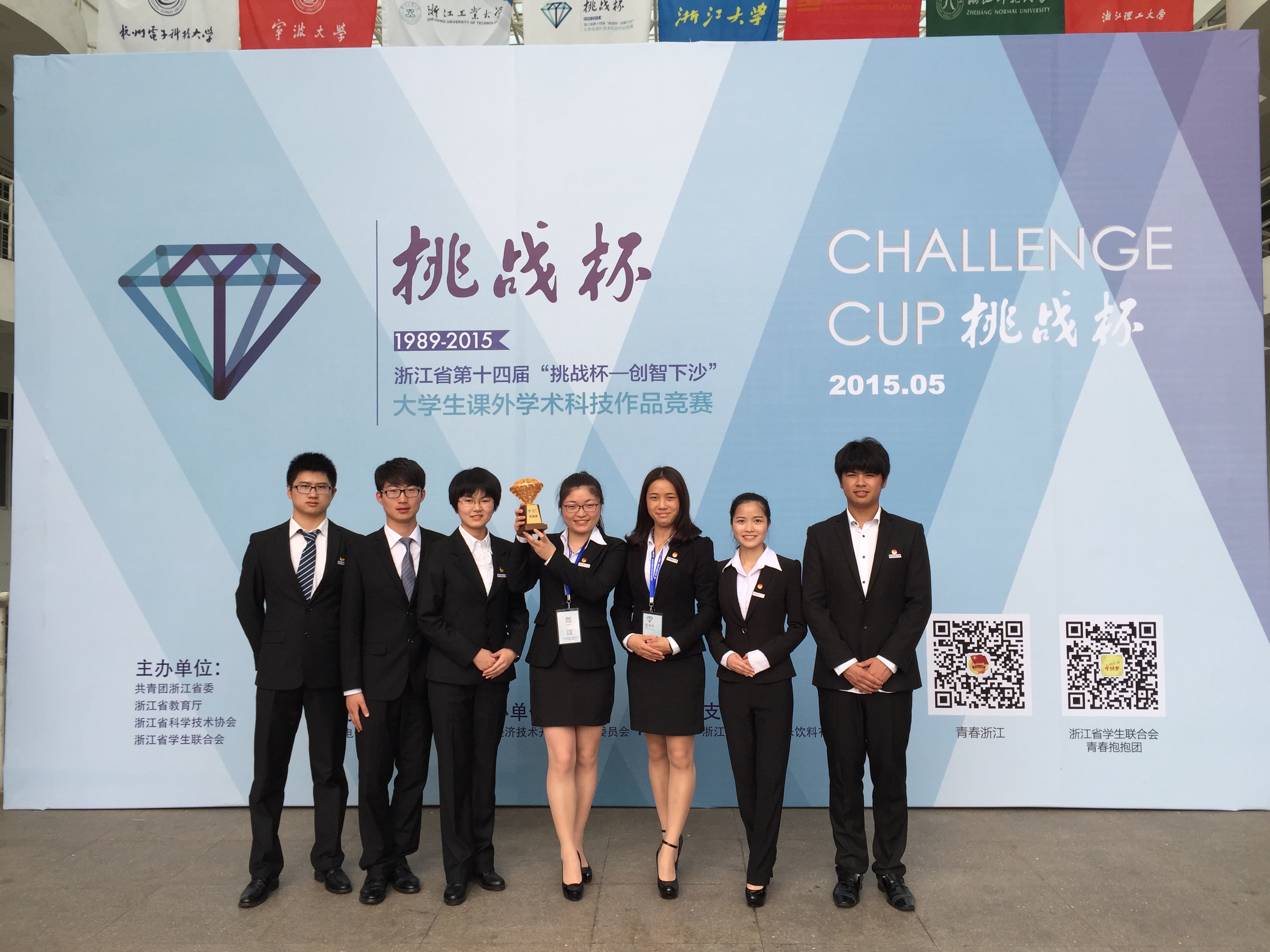 5月23日至24日,由共青团浙江省委、浙江省教育厅、浙江省科学技术协会、浙江省学生联合会主办的浙江省第十四届“挑战杯”大学生课外学术科技作品竞赛在杭州电子科技大学举行。做爱自拍 吴剑丙,王慧中以及钱永生老师指导的马婉琴等七位同学的《浙产道地药材真菌病害调查及杭白菊叶枯病的防治研究》以“深入、生动、实用”的特点打动了专家评委们,一举捧回特等奖奖杯(全校唯一一个特等奖),再一次为做爱自拍 在省级“挑战杯”大学生课外学术科技作品竞赛上画上浓墨重彩的一笔。