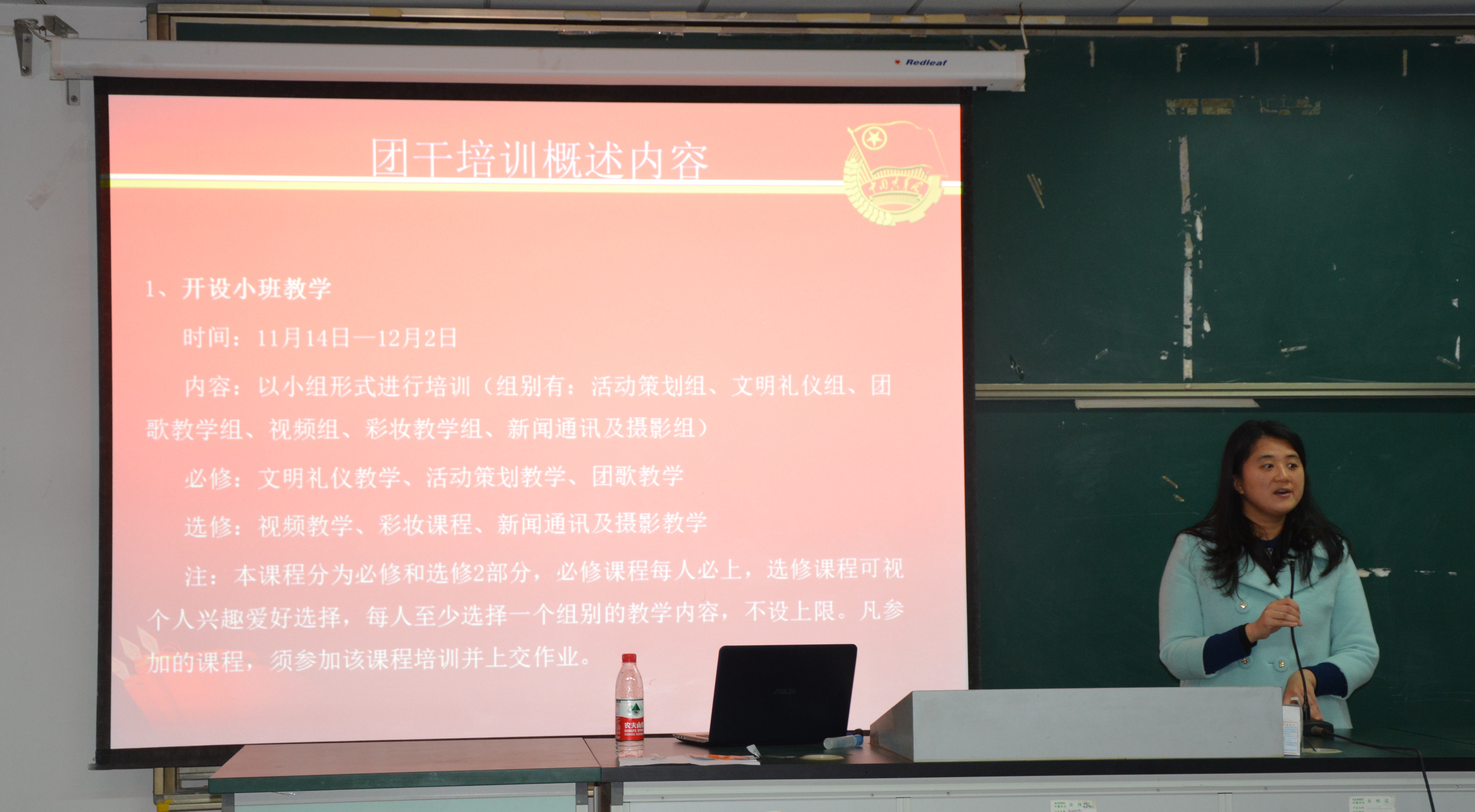2015年11月11日下午,做爱自拍 第十一届团干培训班开班典礼在5号实验楼226教室成功举办。出席本次开班典礼的有院学工办主任程心皓老师,团委书记陈好老师,团委副书记吕京京老师以及院团学联主席团。此次典礼由团委组织部干事黄依琳主持。