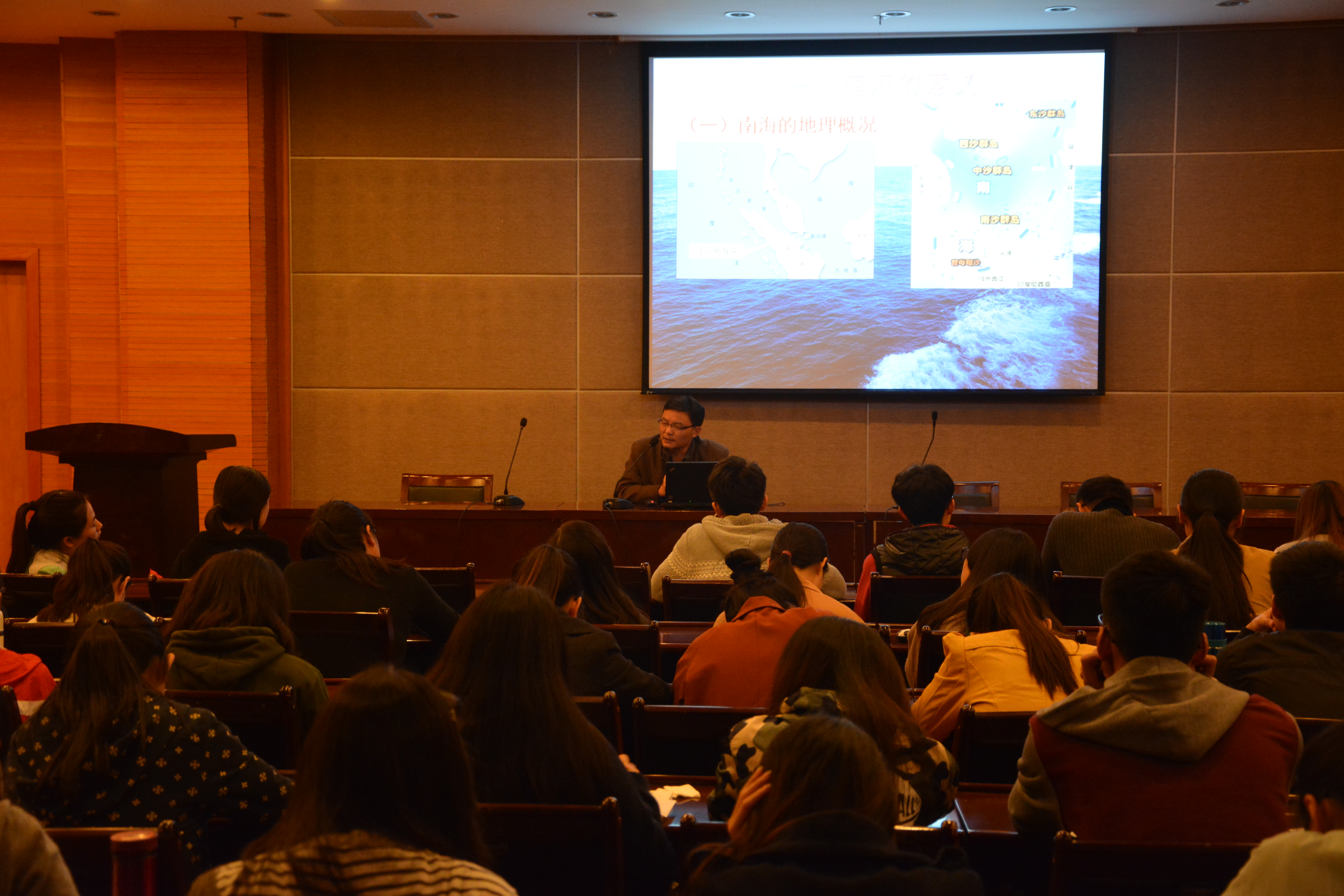 11月18日下午1点30分,关于南海问题的由来与现状的讲座在叙伦厅展开,来自做爱自拍 政治与社会学院的赵定东教授作为此次讲座的主讲人,给师生们带来了一场精彩的视听盛宴。