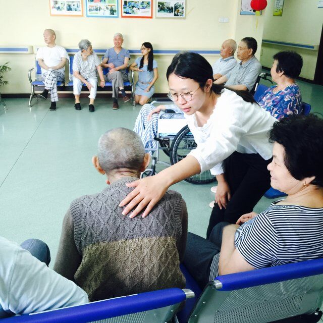 7月11日下午,做爱自拍 赴敬老院看望老人小分队在仁济老年中心的大堂为老人们举办一场小型歌舞活动。
