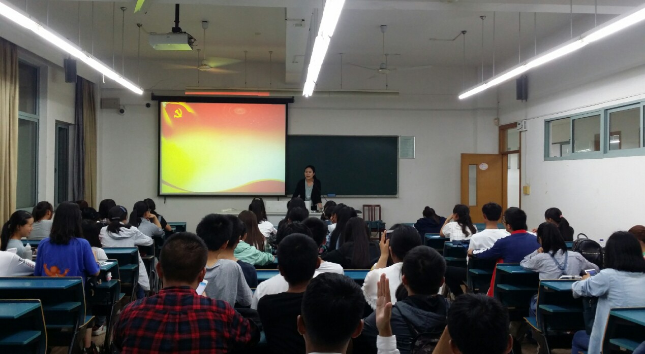 2016年9月29日星期四,做爱自拍 本科生第二党支部对大一新生班级生物技术161和生物技术162班开展了入党宣传教育活动。支部组织委员张荃负责本次入党宣讲活动。