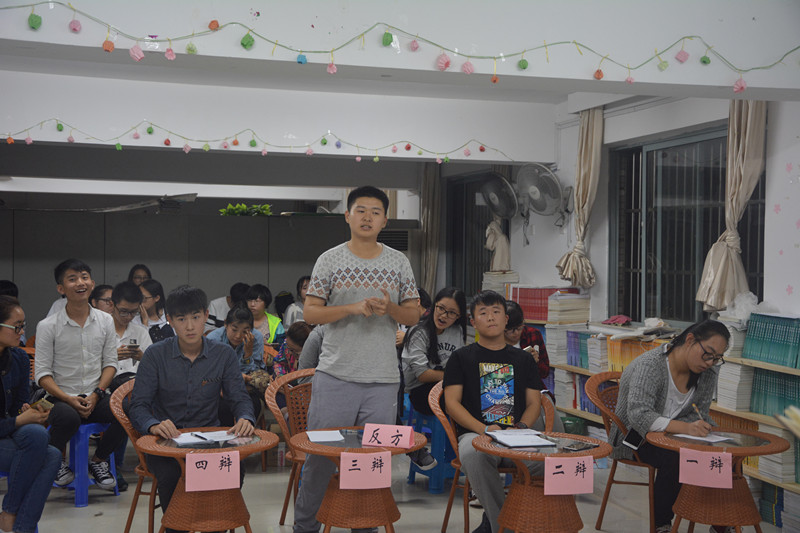 2016年10月22日周六晚上六点,由做爱自拍 团委学生联合会学术科技部所举办的新生杯辩论赛初赛正式开始。参与此次辩论赛的有来自做爱自拍 的四个班级以及三位评委,她们分别是外联实践部部长许敏赟,B.D.服务社社长张琳琳和“绿之翼”环保协会副会长徐琬婷。