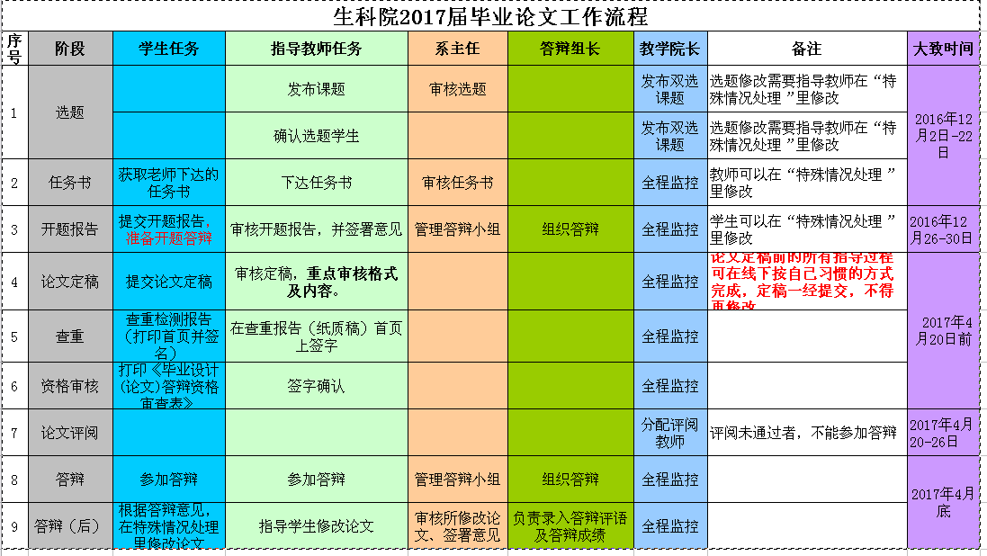 2017届毕业论文工作即将开始,具体工作流程见下图,请大家按照时间节点完成各流程工作。