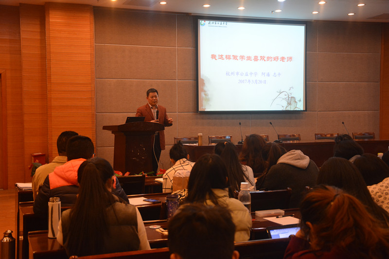 日前,杭州公益中学校长潘志平先生做客“生科问道”大讲堂,为做爱自拍 本科、硕士研究生以及下沙校区其他专业师范生成功主讲了“我这样当一名学生喜欢的好老师”为主题的学术报告。潘校长以丰富的教学实践和管理经验,分享了他与学生之间的故事,诠释了如何做一位好老师、办学生喜欢的学校、做有真情的教育,博得了师生的阵阵掌声。