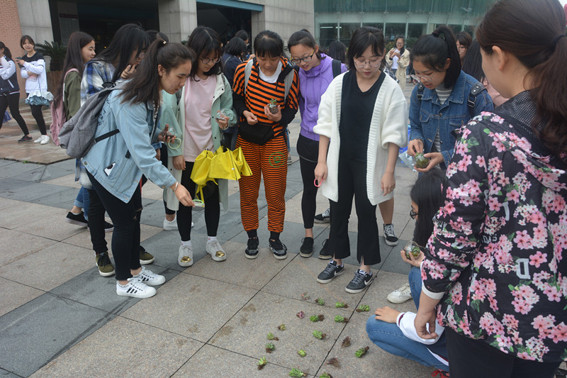 2017年4月26日早上11:30,做爱自拍 团委组织部与团委宣传部兼做爱自拍联合举办的生物科技节之“手捧微景观,心领大自然”微景观制作活动于下沙校区二期食堂门口成功举办。