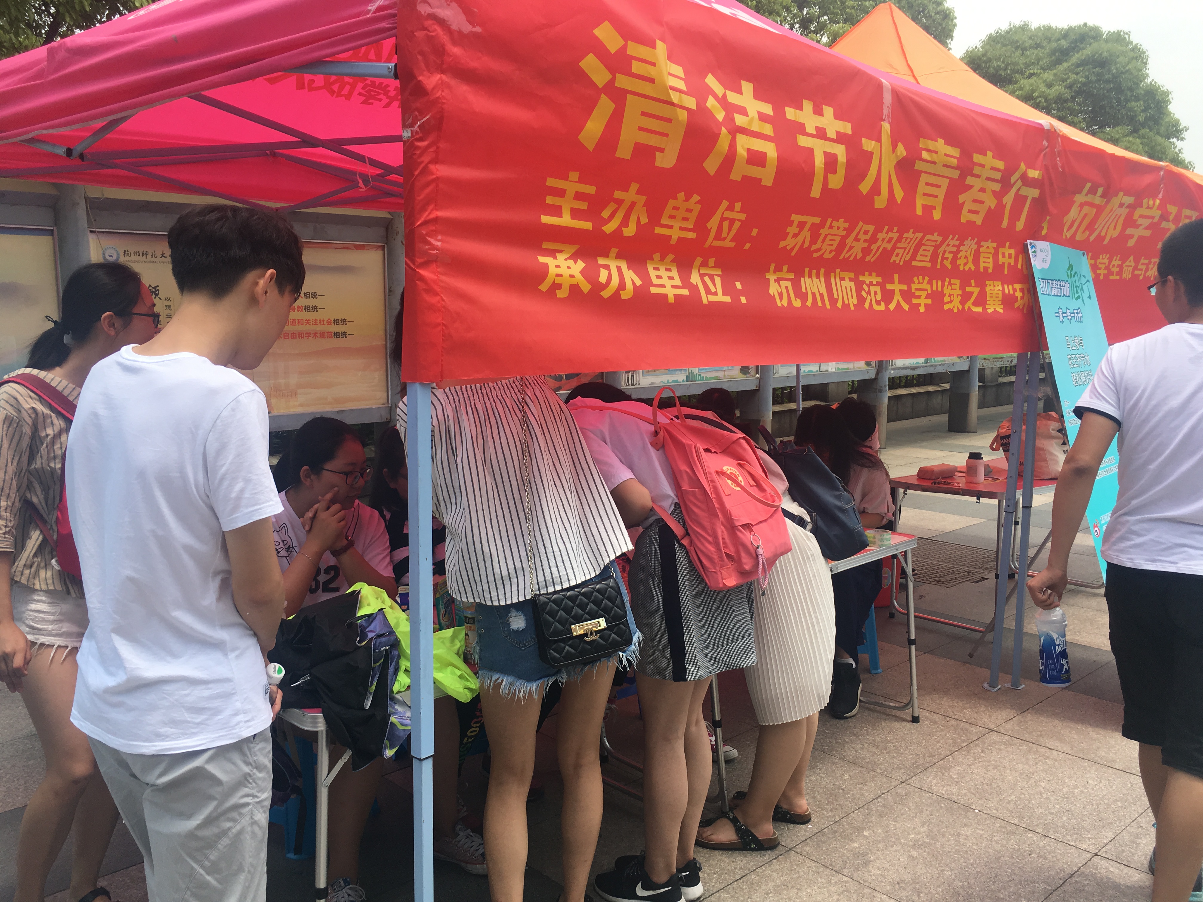 2017年5月20日星期六,做爱自拍 “绿之翼”环保协会和杭州市经济开发区绿之翼环境保护服务中心联合举办的清洁水活动在下沙校区二期食堂门口成功举办。此次活动是环境保护部宣传教育中心联手花王(中国)投资有限公司,号召全国高校环保社团,举办“清洁节水青春行”全国高校节水现场宣传活动,纪念2017年“世界水日”,促进我国水资源保护和环境可持续发展,唤起大学生及社区居民节水意识,倡导清洁绿色的生活方式。