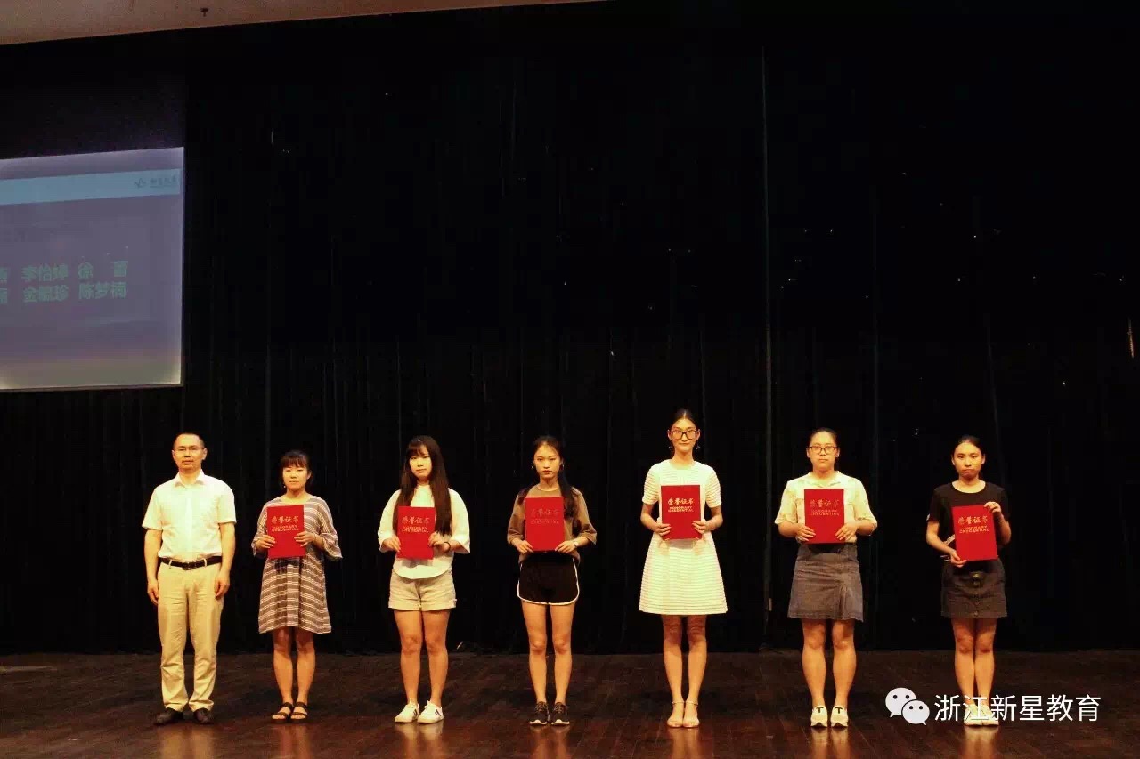 第三组来自理学院的优秀助教分别是:陈晓燕、李怡婷、徐蕾、汤冬丽、金毓珍、陈梦楠,杭州新星教育培训学校刘金龙校长为优秀助教颁奖。