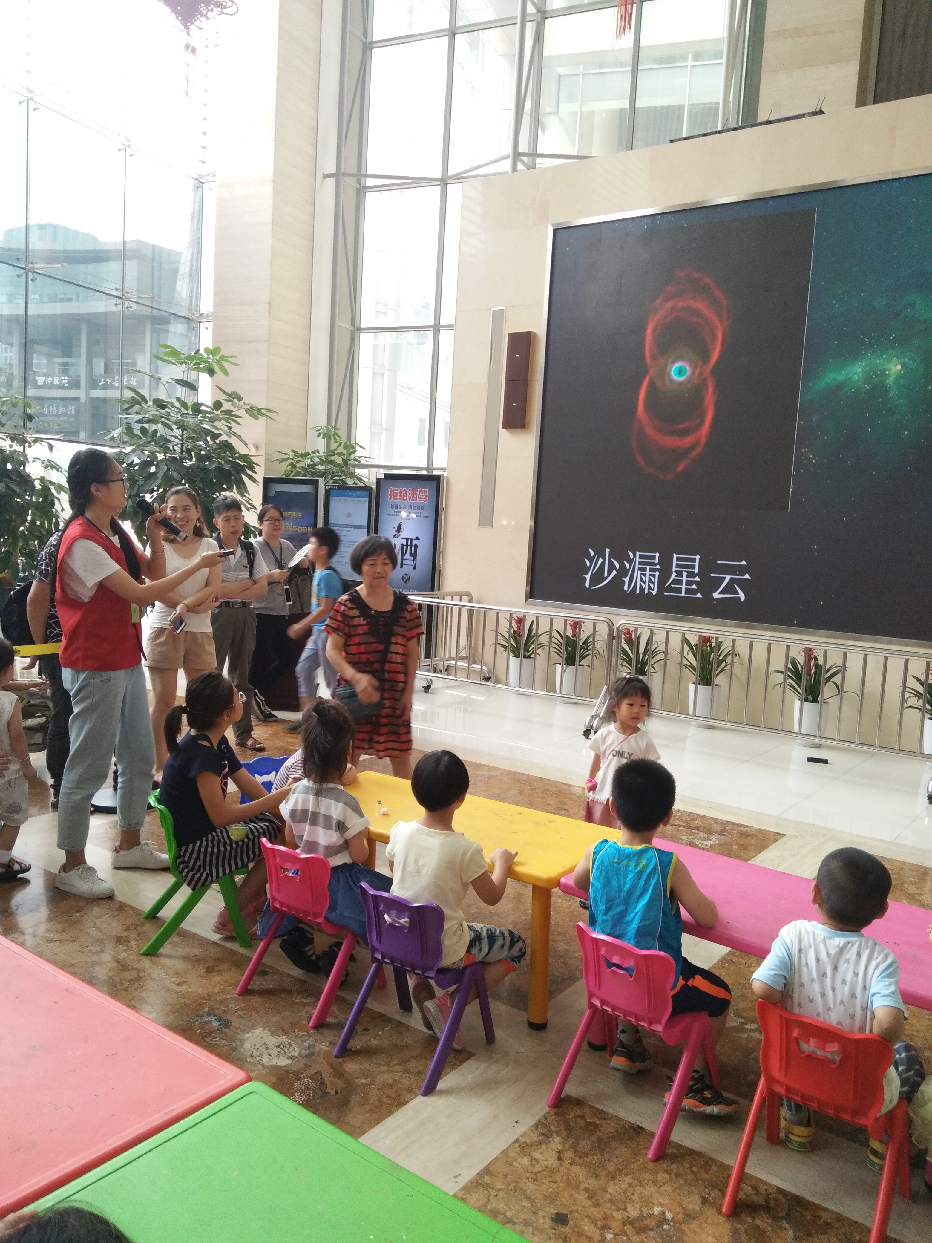 七月八日上午,做爱自拍 B.D.服务社“环保小课堂”小分队在浙江自然博物馆开展了“星空风采我知道”——星云瓶制作亲子活动。