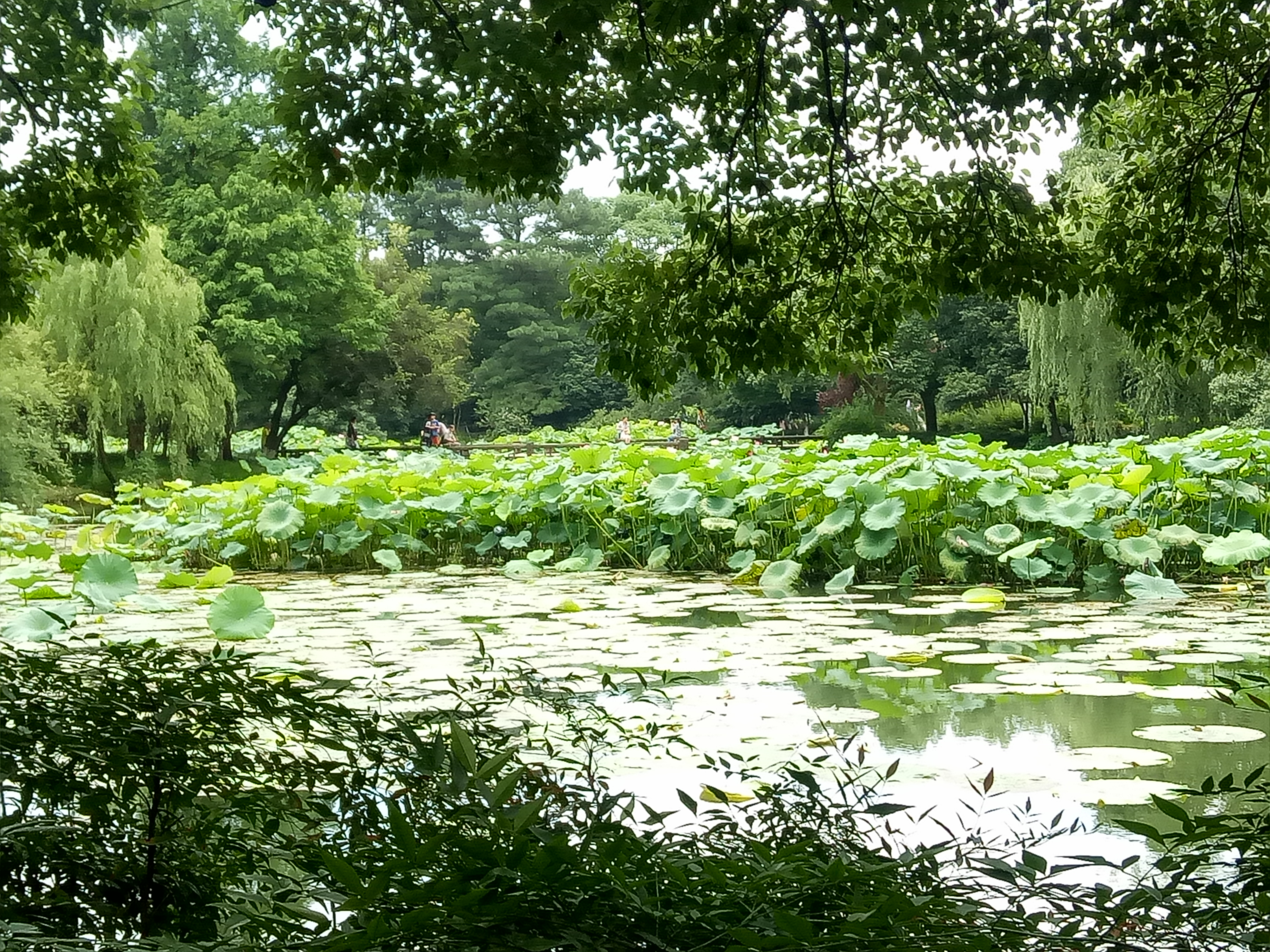 接着,两位同学来到了“曲院风荷”景点。“曲院风荷”视野开阔,有一大片荷塘,荷塘中荷花盛开,抬头望去是一片碧蓝的天空。景点的小道上十分干净,荷塘上飘着几片落叶、未打捞的枯萎的荷叶,还有些浮萍,使荷塘显得不那么整洁。小队成员们关于景区水质问题和垃圾分类问题再次向游客与环卫工人做了提问,得到的回答却并不乐观,游客会向荷塘乱扔食品包装袋和塑料纸,垃圾分类也做得不够,水面上还时常飘着烟蒂和小朋友们的玩具废弃物。“不过令人欣慰的是今年的荷花开得特别好,水质么也就那么回事了。”一位大妈如是说道。