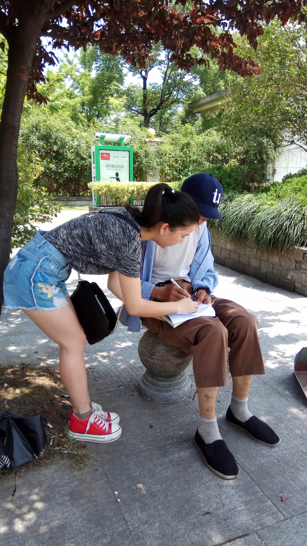 首先进行了工作安排,先进行垃圾调查,在沿途进行问卷调查,还可以询问在工作的环保工作者关于钱塘江垃圾问题。在去钱塘江的路上,偶尔也会看到一些垃圾,但不是很多,也许与环卫工人清扫过有关。每当看到垃圾时,成员们都会把它捡起来,然后扔到垃圾桶里。当到达钱塘江边时,二人看到草坪上有着很多的垃圾,而且都是一堆一堆的,他们推测是昨晚的游客留下的。当天气好的时候,很多人愿意来江边烧烤,这虽然是一种不错的想法,但是不能也不应该把垃圾留下,这给环卫工人增加了许多的工作量。不管怎样,垃圾猎人小分队的成员都没有忘记自己的工作。两个人手里都拿着垃圾袋,遇见有兴趣的路人便上去询问,并请求帮忙填写问卷,两个人一点也没有懒惰的思想。在这过程中,有很多的人都驻足观看,甚至也愿意加入成员们,不仅如此,队员们还在他们眼里看到赞赏。而且很多人都愿意帮忙填写问卷,他们还亲切的与队员们进行交流,他们也希望有更多的人与他们一同做这样的事。环卫工人也对小分队的行为表示夸赞,并表示现在这种乐于助人的行为或者说只是简单的随手之劳,也有很多人不会去在意,可能觉得麻烦,或者觉得有人会收拾就不去做,这让垃圾猎人小分队成员都感到非常的开心,同时表示自己会坚持下去并不只是这次的实践,在日常生活中,也会爱护环境,让垃圾回家。