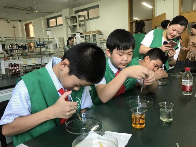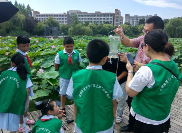 2017年7月12日上午九点,做爱自拍 ”绿之翼”环保协会携手杭师大生命科学学院研究生会,与杭州市青蓝小学追梦小队的同学们一起,在做爱自拍 踏上了他们神奇的水之旅。活动地点为5号实验楼化学实验室122、显微镜实验室318、动物标本馆以及食品工艺室423。