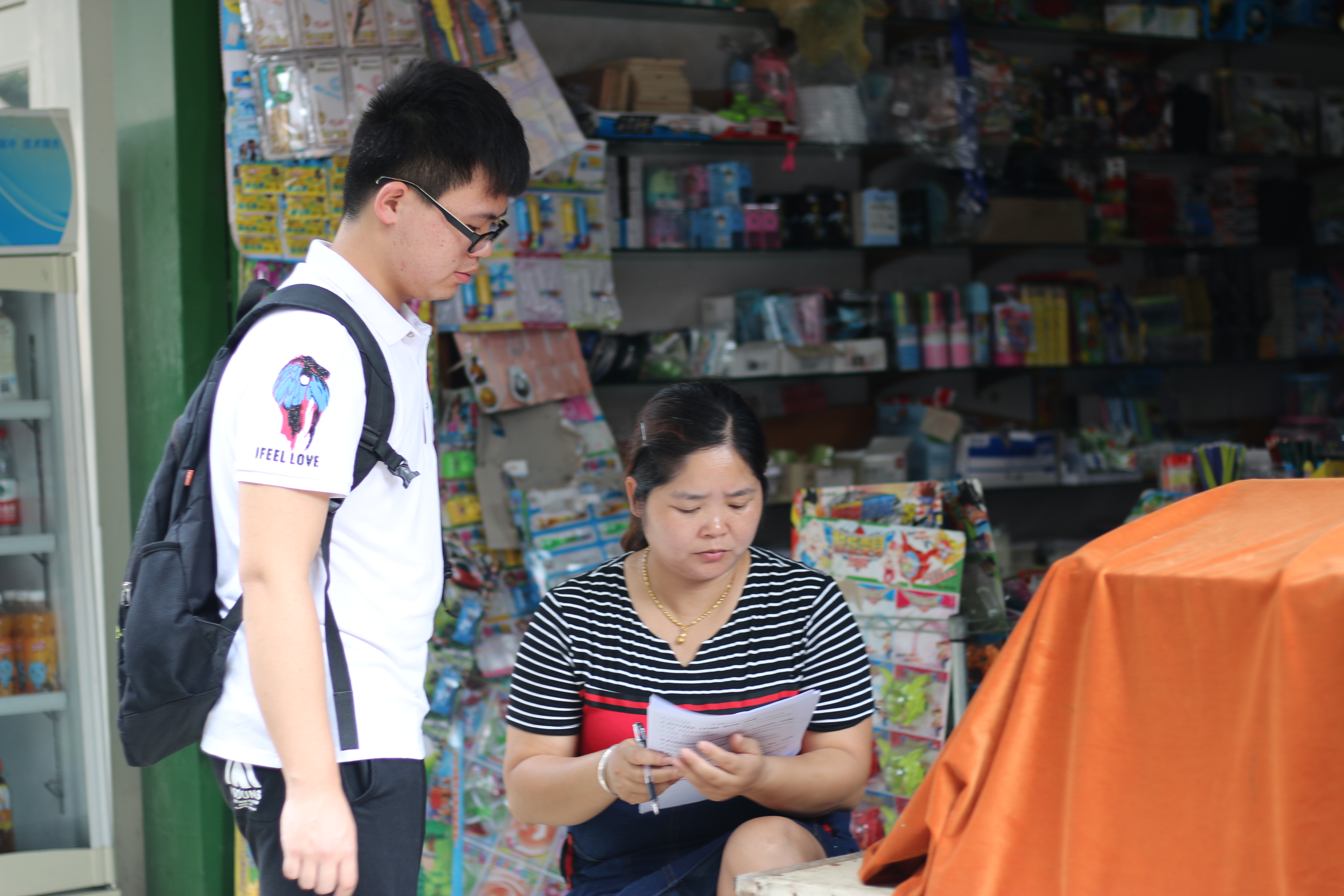 赴余杭区社区五水共治教育宣传小分队 请食品店老板填写问卷