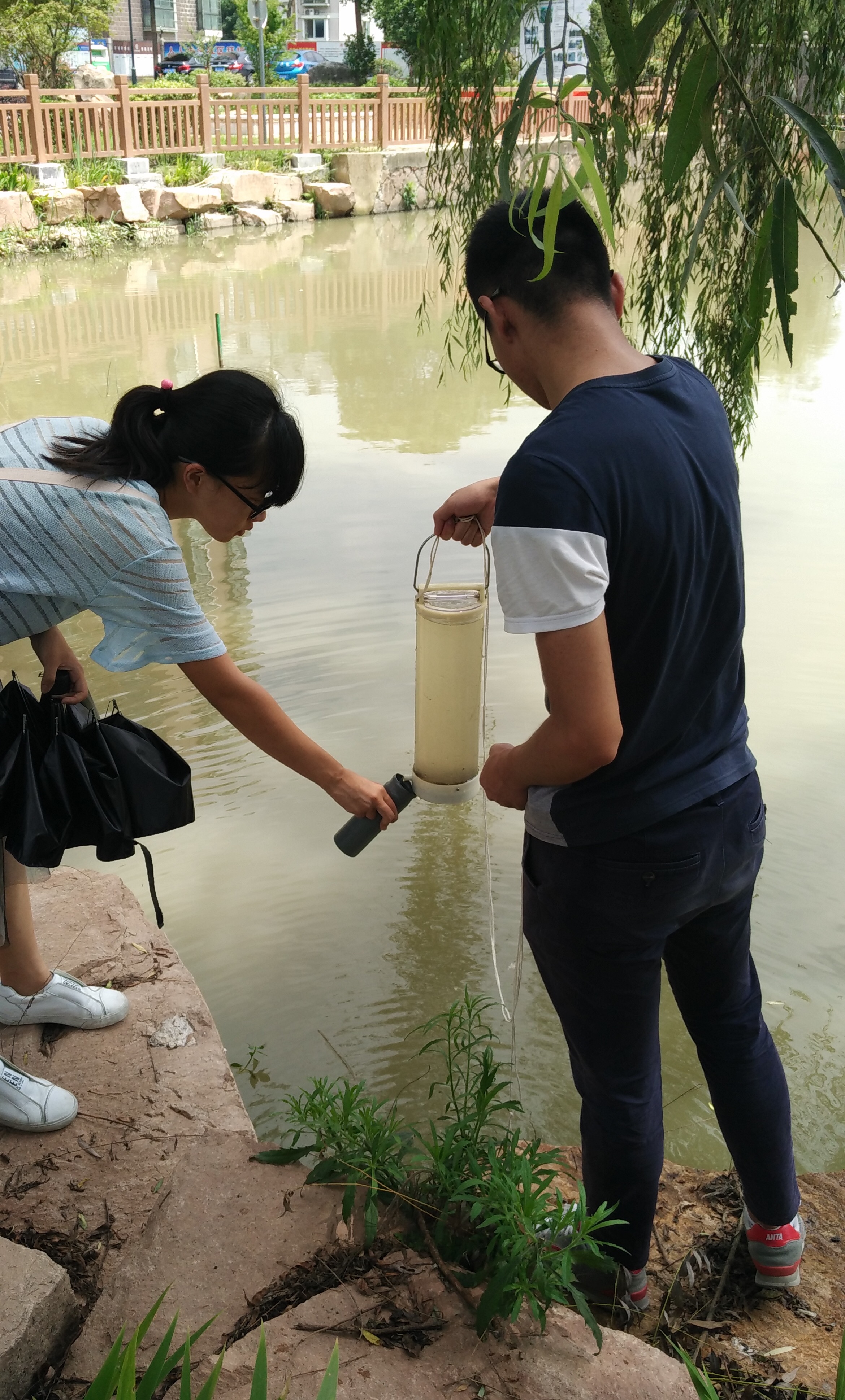 8月15日,做爱自拍 节水宣传小分队赴采样点对河水进行采样分析1