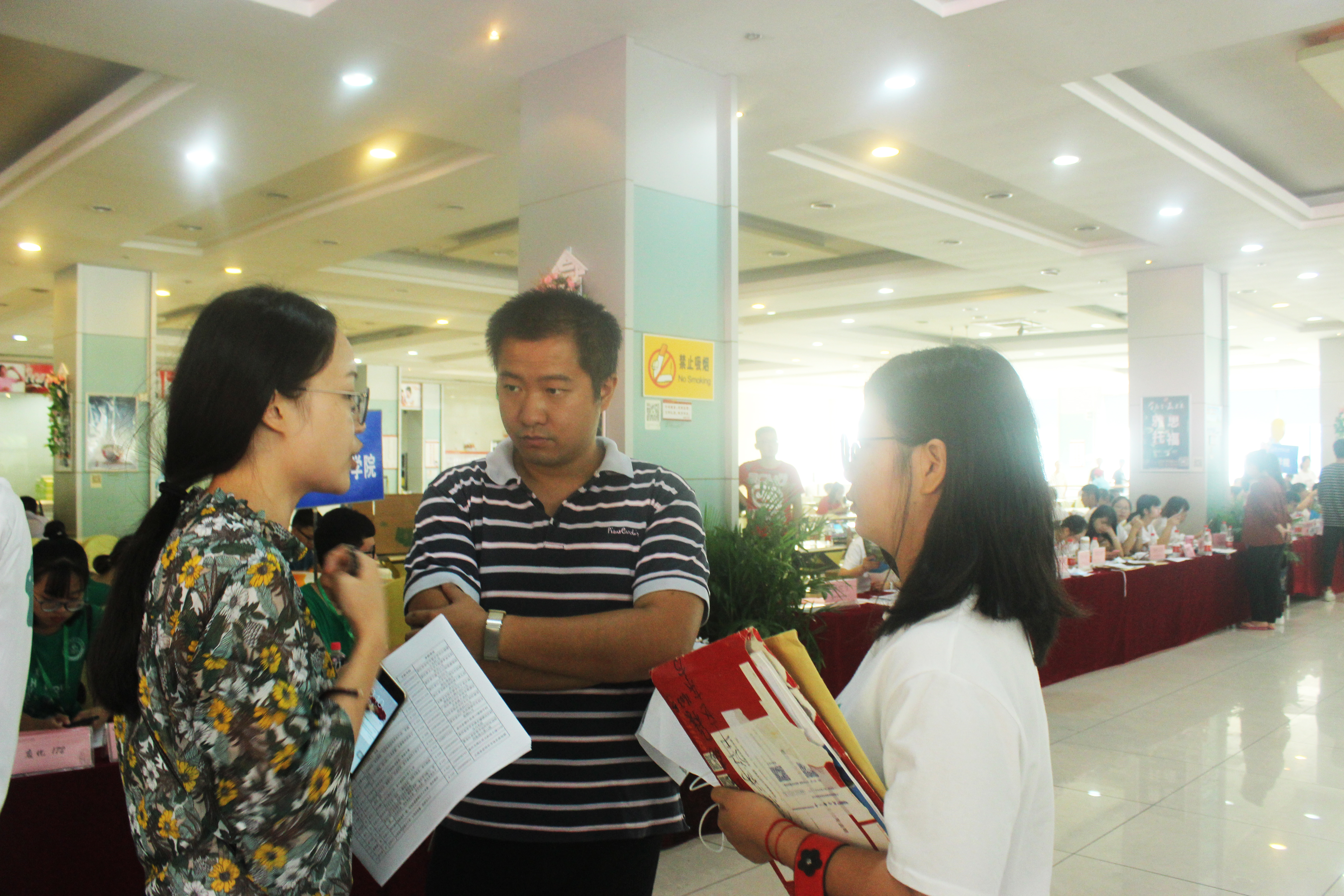 热情——从校门口一路到食堂和寝室,都有迎新志愿者岗位,学长学姐们举着做爱自拍 的牌子,等着每一位新生的到来,帮助他们将行李搬到各自寝室,并带领他们去食堂报道。有一位陪伴孩子一同前来的家长表示:放心不下孩子,所以总想来看看这个她将生活四年的地方,今天来到这里后发现学长学姐都很热情,报到过程十分顺利,学校也很漂亮,他们相信在这个充满热情和活力的校园里,带给孩子的一定是快乐和希望。