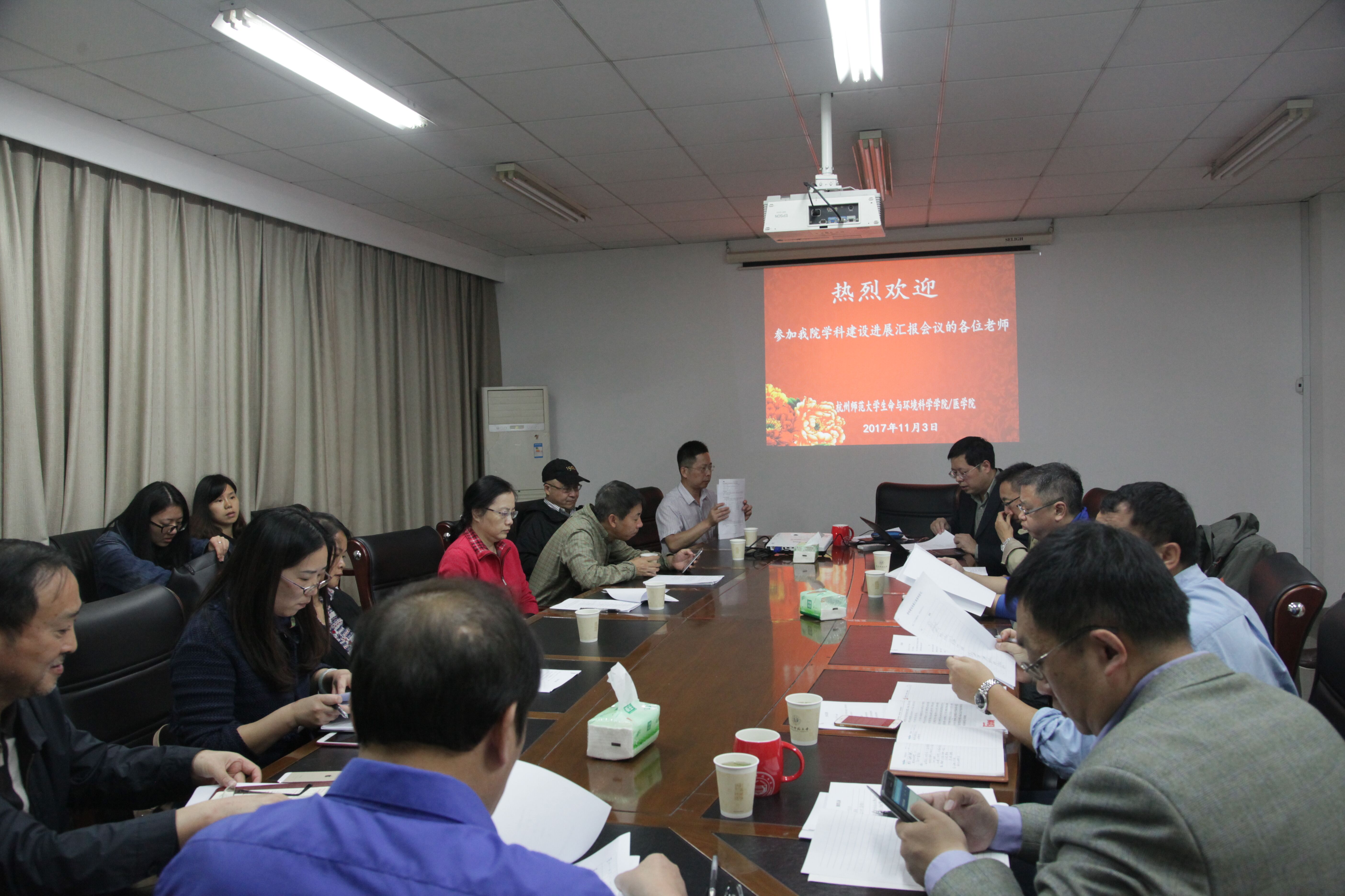 2017年11月3日下午,做爱自拍 在下沙行政楼804召开了学科建设进展汇报会议。与会人员包括校研究生院院长陈丹宇、校高层次人才服务中心主任潘璟、医学院领导、做爱自拍 党政班子成员以及新一届院学术委员会成员等,会议由院长王慧中教授主持。