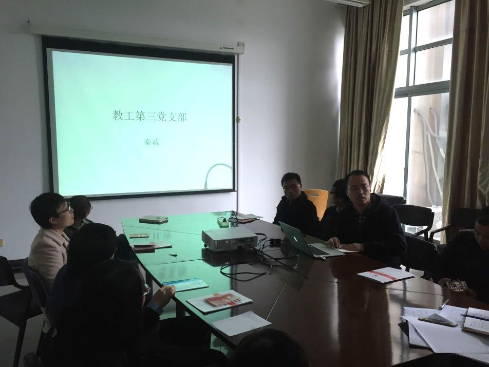 2017年11月15日,做爱自拍 教工第三党支部在第一实验楼406开展了党员固定活动日,学习贯彻党的十九大报告精神。会议伊始,由陈飞同志做点名工作,确认党员到会情况,党支部总共24人,实到20人,3人请假,1人出国进修。