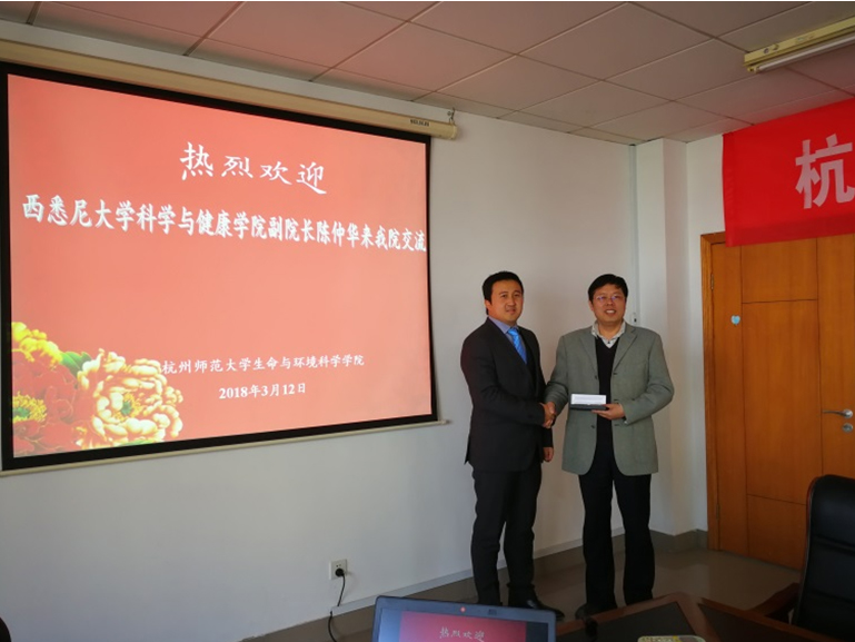 2018年3月12日上午,澳大利亚西悉尼大学科学与健康学院国际副院长来做爱自拍 交流国际合作办学,院长王慧中、副院长薛大伟、副书记余洁、副院长于彦春、各系主任、教学科等出席了交流会。王慧中院长首先对学校和学院的情况做了介绍;陈仲华教授介绍了西悉尼大学和科学与健康学院的情况,并针对本科生国际交流项目的申请、学生学习及生活等方面做了重点介绍。最后,陈教授与薛大伟副院长、各系主任和教学科对6个月本科生交流、3+1合作办学、课程设置等情况进行了深入探讨,并确定积极推动该项目的进程。