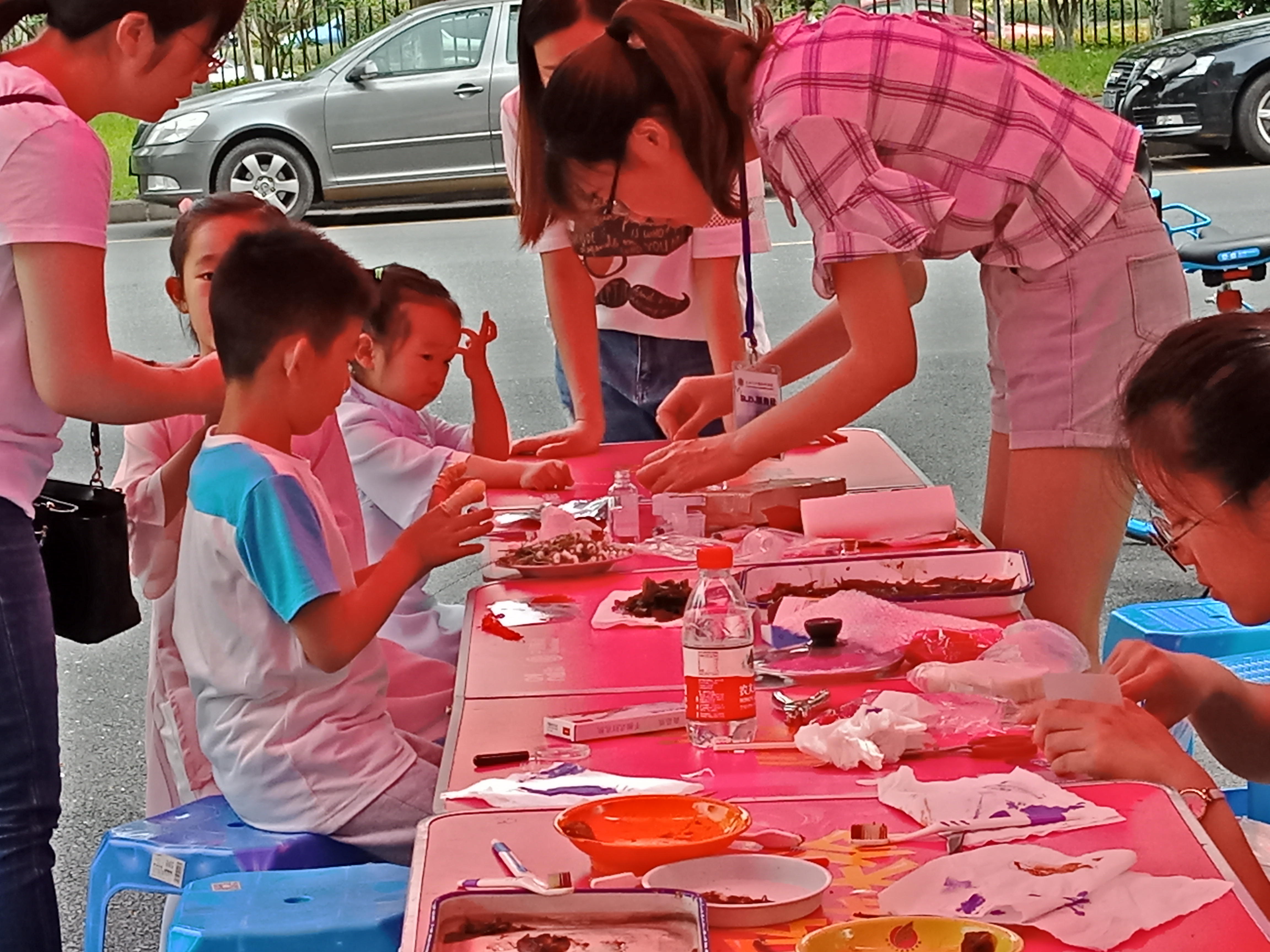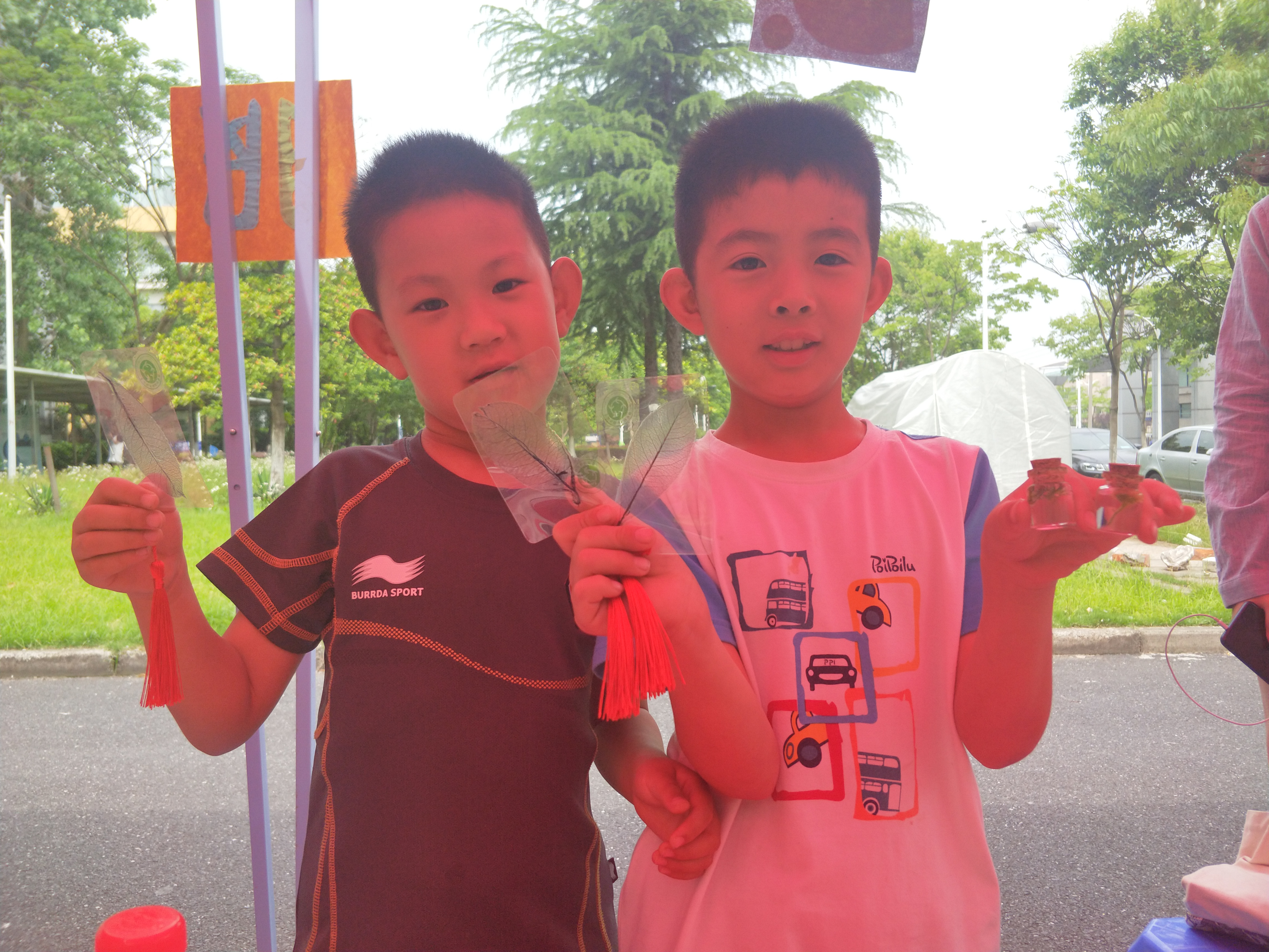 早上八点多,在社团成员的努力下,五号实验楼下的活动现场已经布置完毕,工作人员开始等待校友的到来。尽管上午的天气闷热,但他们依旧不辞辛苦地为活动的顺利进行而奔波。很快,第一批校友来到了活动现场,她们带着自己的孩子回到了充满回忆的母校。这些小朋友们对于叶脉书签和琥珀的制作都充满了兴趣,迫不及待地想要试试。在工作人员的帮助下,他们成功地完成了制作。