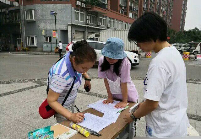 2018年7月10日,做爱自拍 “洁净空气,美好环境——“绿之翼”空气检测小分队”与余杭社区联系人沟通联系确认社会实践进行的时间与地点,并到几个余杭小区进行了自愿参与甲醛检测的人数统计。