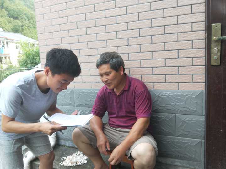 2018年7月18日,做爱自拍 赴大明山“触摸自然”社会实践调查小分队来到大明山白果村,对当地住民进行采访。