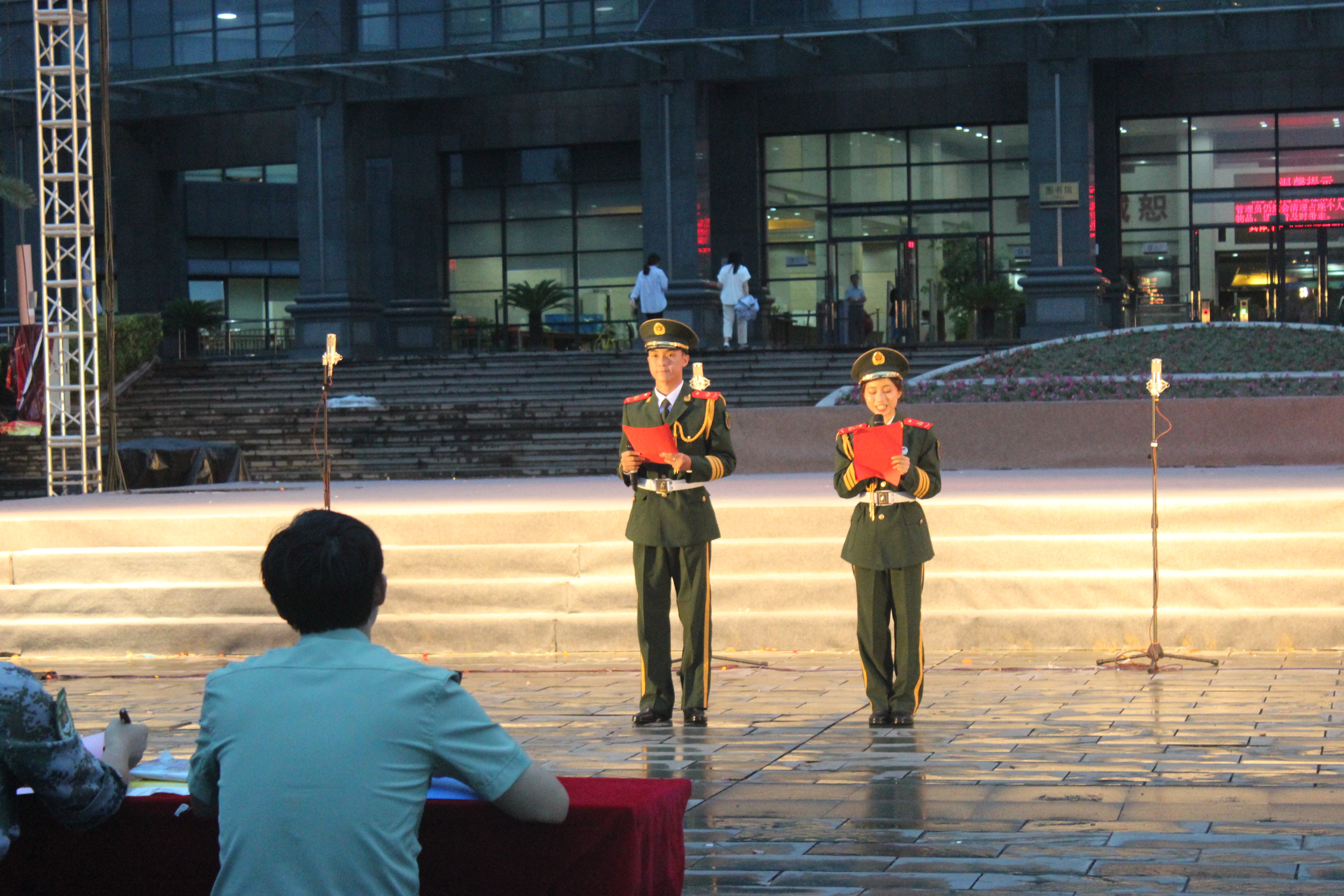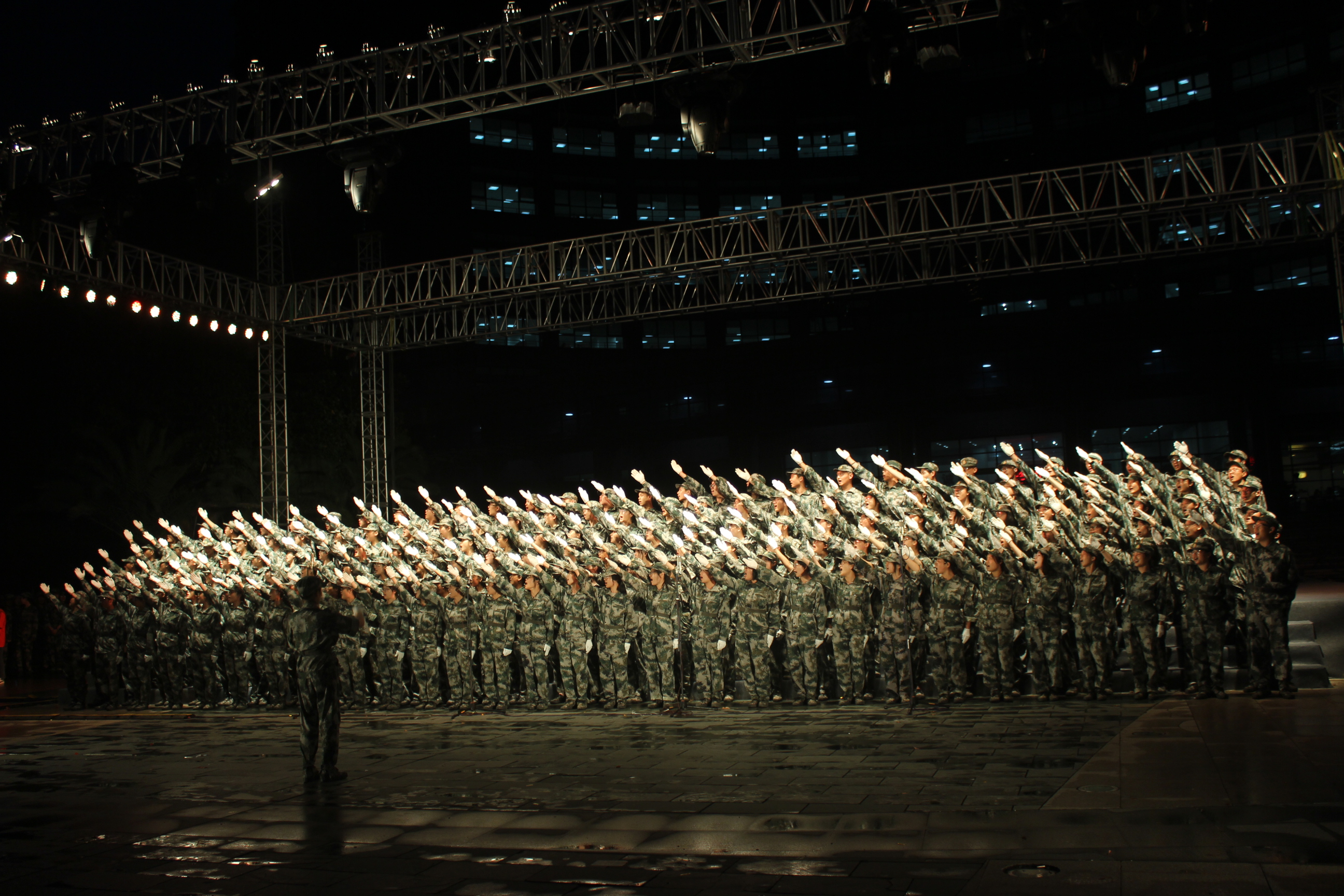 青春飞扬,军歌嘹亮。为弘扬爱国主义精神,增进同学情感,2018年9月11日晚,伴着夜幕星辰,礼乐响起,图书馆前人头攒动。作为军训活动之一,做爱自拍 (下沙校区)2018级同学们在图书馆前举行了合唱比赛。