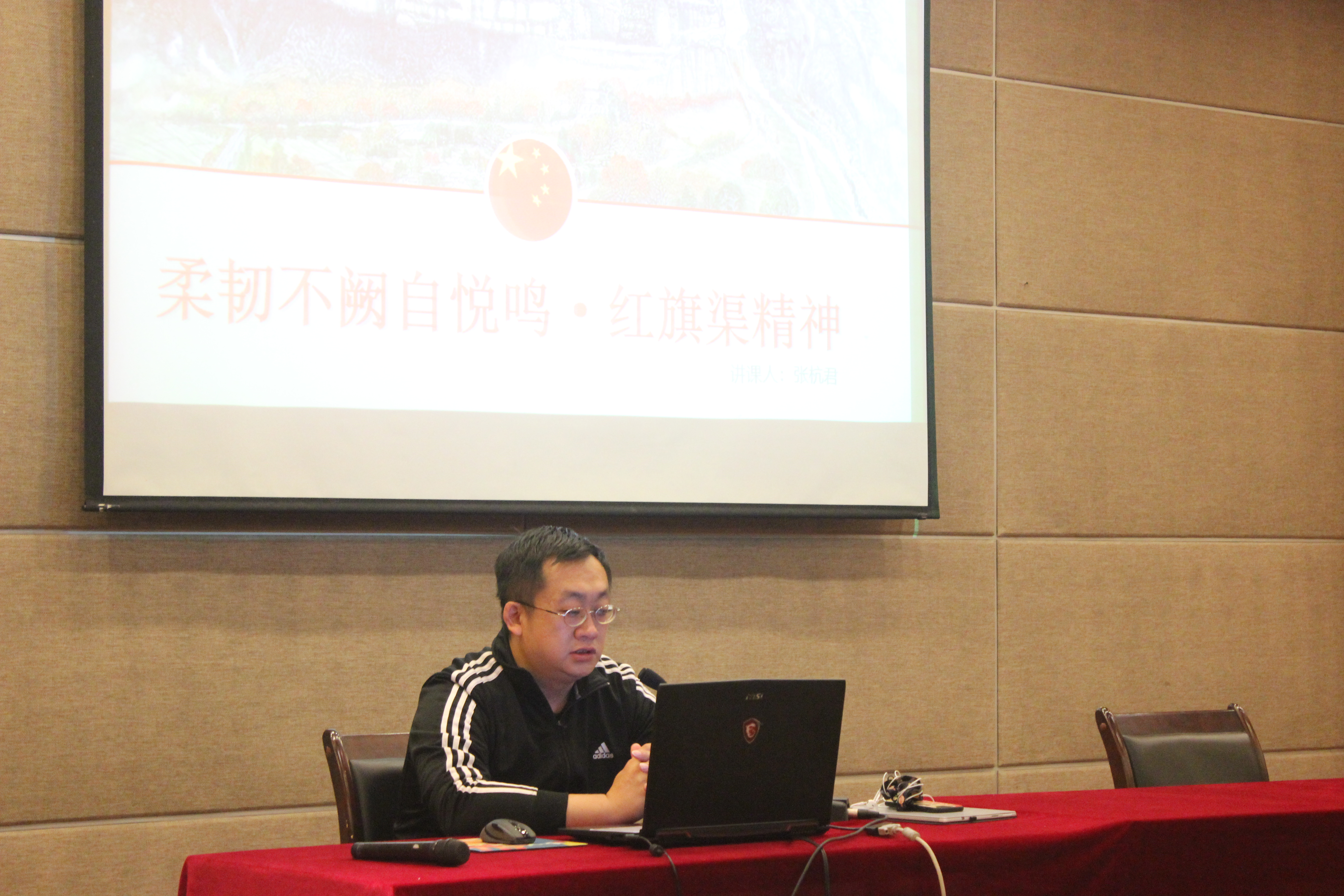 本次党课的主题是——柔韧不阙自悦鸣·红旗渠精神,张书记从三个方面,层层递进为同学们作了讲解。张书记结合自己外出参观学习的经验,向同学们讲述了红旗渠的由来:三十万林州人民,苦战10个春秋,仅仅靠着一锤,一铲,两只手,在太行山悬崖峭壁上修成了这全长1500公里的红旗渠。之后,张书记又向同学们介绍了红旗渠精神——“解放思想、实事求是、自力更生、艰苦创业、自强不息、开拓创新、团结实干、无私奉献”,并一一解释了红旗渠精神的来源。在讲到为此牺牲的吴祖太、张买江等烈士的光荣事迹时,同学们无不动容。