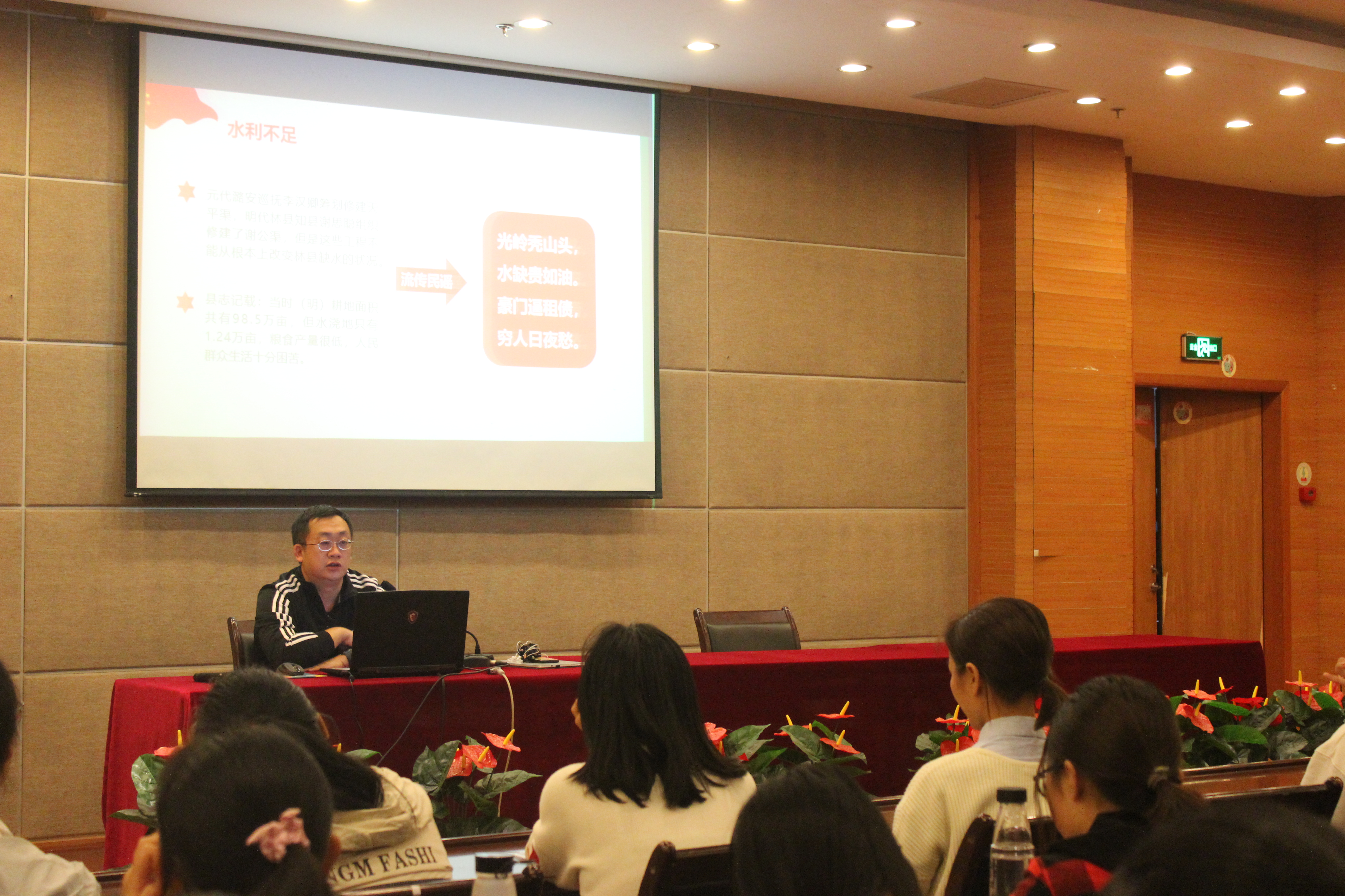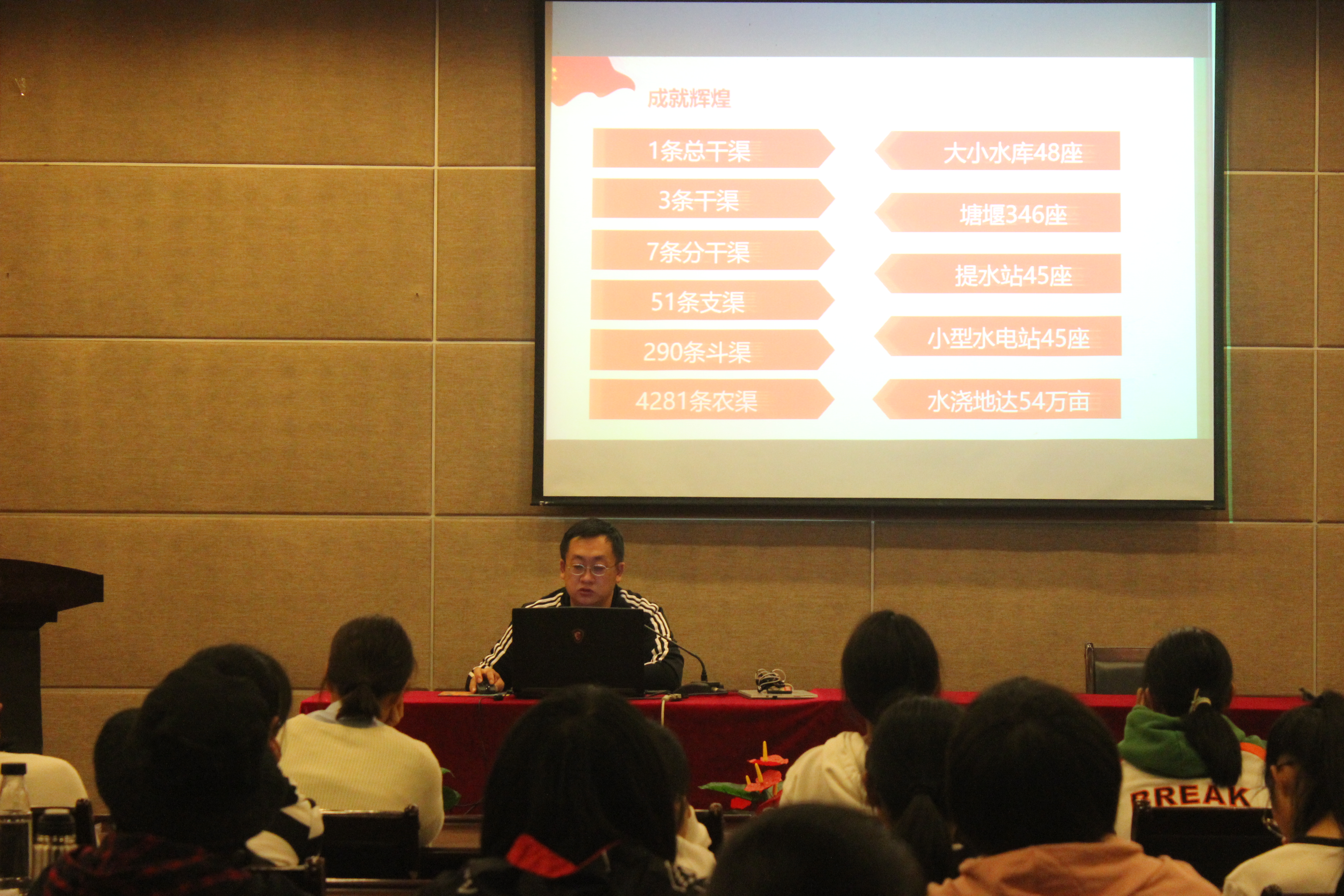 紧接着,张书记向大家提出了一个问题:如何弘扬红旗渠精神?在同学们认真思虑后,他从三个方面作了解答:一是要坚定理想信念,张书记认为作为当代大学生,必须要牢记自己的使命,敢于担当,迎难而上,主动谋求自身发展;二是要坚持同人民在一起,张书记指出当代大学生应响应习近平总书记的号召,在新时代展现新作为,书写新的光荣;三是要发扬钉钉子精神,张书记结合如今大学生之间出现的浮躁风气和种种不良现象,告诫大家:要沿着正确的目标,持之以恒,为将来的人生奠定基础。