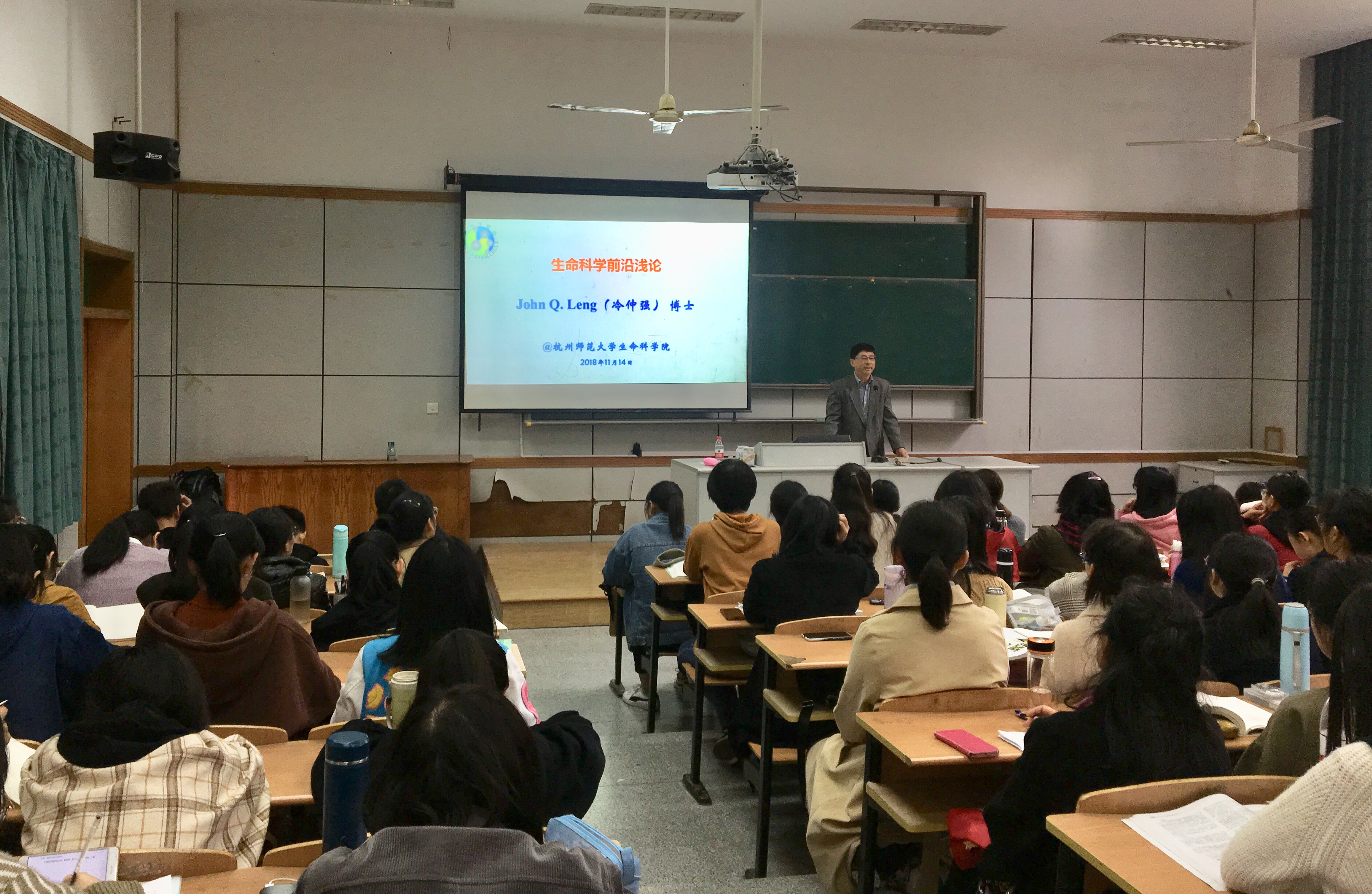 11月14日,国际企业协会(纽约)副理事长、医学研究中心教授、主任,杭州哈鲁生物科技股份有限公司董事长冷仲强博士,应邀来做爱自拍 为2018级本科生做主题为“生命科学前沿浅论”的讲座。讲座由薛大伟副院长主持。冷仲强博士从曾在耶鲁大学医学院参与的细胞与分子生理领域研究的经验出发,介绍了生命科学的国内外发展现况及未来发展趋势。并结合自身在该领域丰富的科研经历,拓展了学生的视野及进一步提升了学生对生命科学领域学习的积极性。