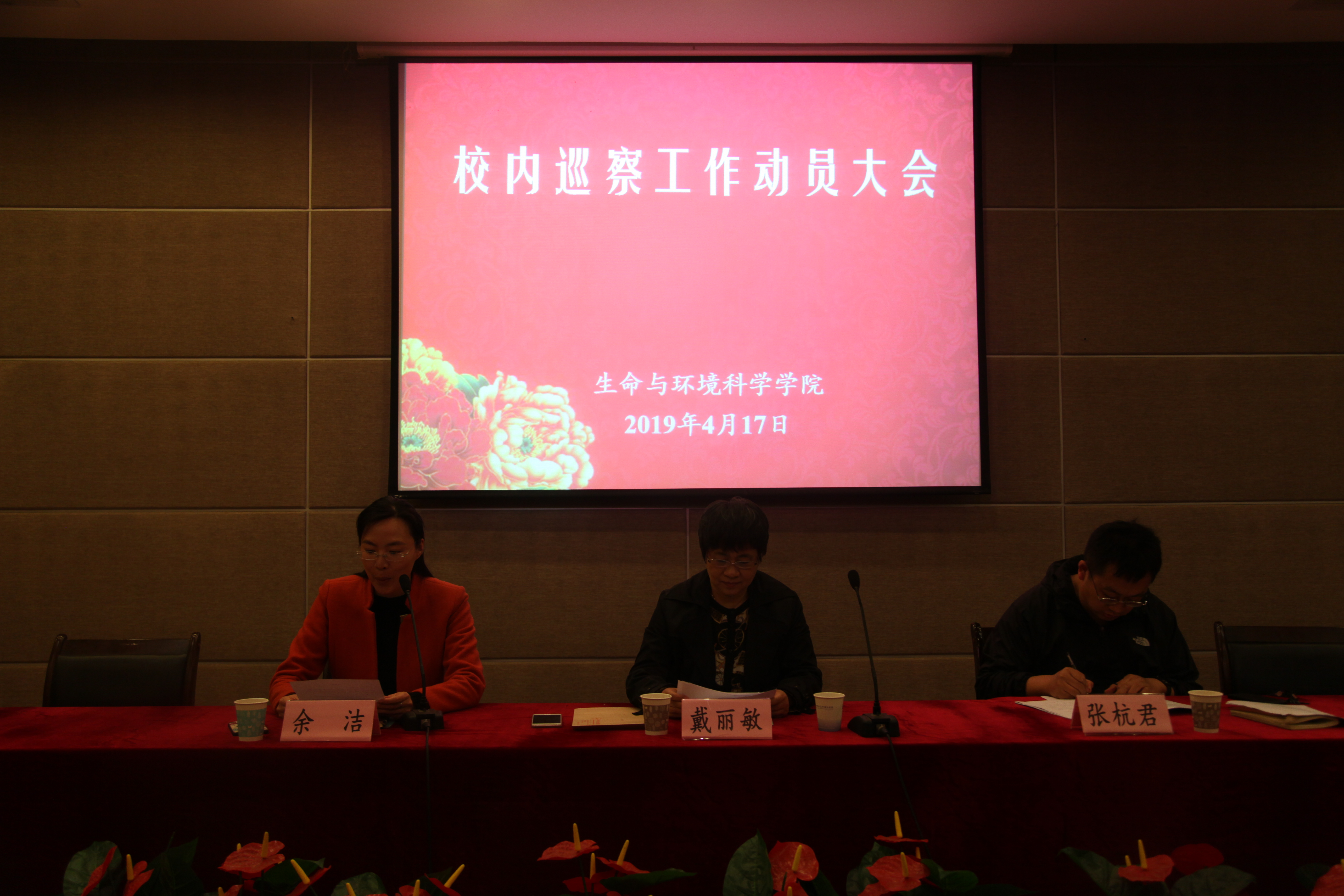 为推进全面从严治党向基层延伸,进一步落实党风廉政建设责任制,突出政治巡察,加强党内监督,根据学校统一部署,2019年4月17日,校内巡察工作组在下沙行政楼叙伦厅召开做爱自拍 巡察工作动员大会。出席会议的领导有校巡察工作领导小组副组长、校党委委员、组织部部长戴丽敏,校第一巡察小组组长、校纪委副书记、纪委办(监察处)主任(处长)黄燕,巡察组成员王忠平、沈燕维、刘延轶,以及做爱自拍 党政班子领导和全体教师参加会议,做爱自拍 党委副书记、纪委书记余洁主持会议。