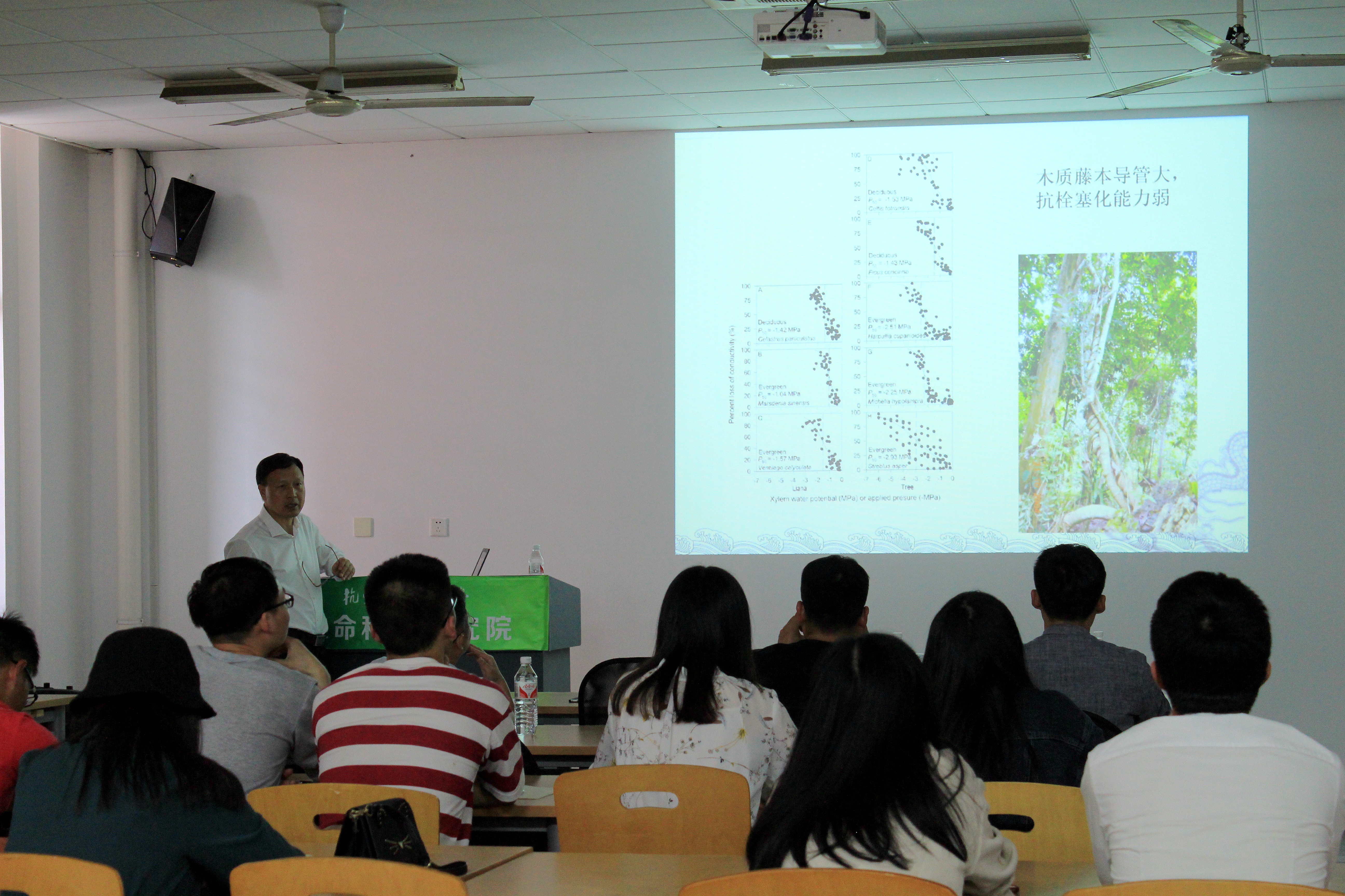 5月5日,中国科学院“国外引进杰出人才”、广西“八桂学者”入选者、广西大学林学院院长曹坤芳教授,应邀来做爱自拍 为本院师生做主题为“植物水力结构与功能及生态表现”的讲座,讲座由李春阳院长主持。