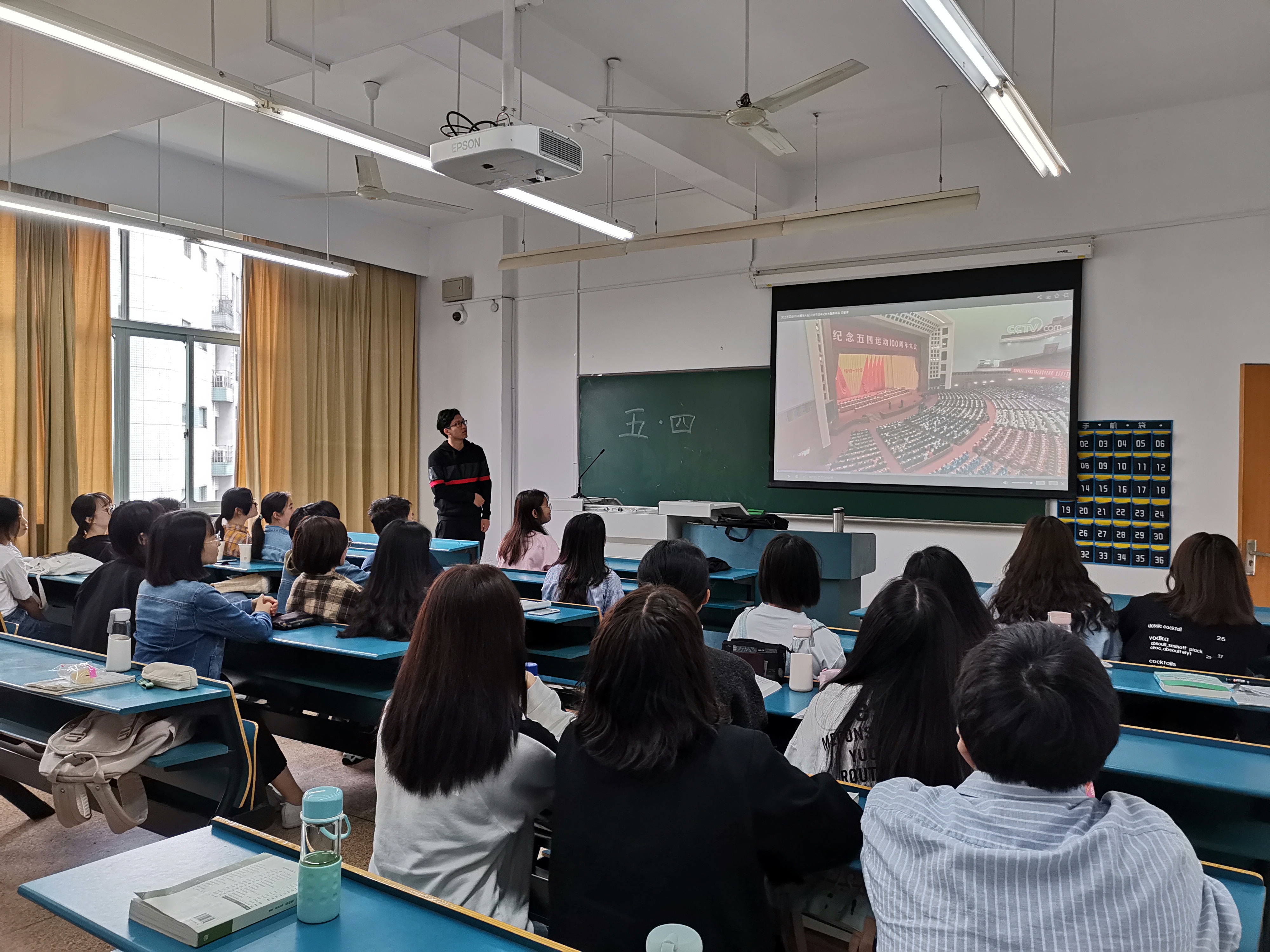 各班级主要以观看习近平总书记在五四运动100周年大会上发表的重要讲话、五四运动的相关影音视频等形式召开了班会。环工171班通过观看《建党伟业》片段,宣传委员放PPT讲解五四爱国运动历史事件等形式来纪念五四运动,领略五四精神。食安171班则观看《我的1919》电影,使得同学们明白什么是真正的爱国,怎样去爱国,以及自己所肩负的历史责任。有的班级更是以创新性的形式开展了主题班会,如生科182通过朗诵诗歌《历史的选择》,表演小品《五四的觉醒》,演唱《共青团团歌》等同学们喜闻乐见的方式进行学习;生科172同学们在观看完相关视频后纷纷谈论起自己对五四精神的认识,同学们各抒己见,气氛融洽,最后班长发言总结并带领全班同学合唱共青团团歌。