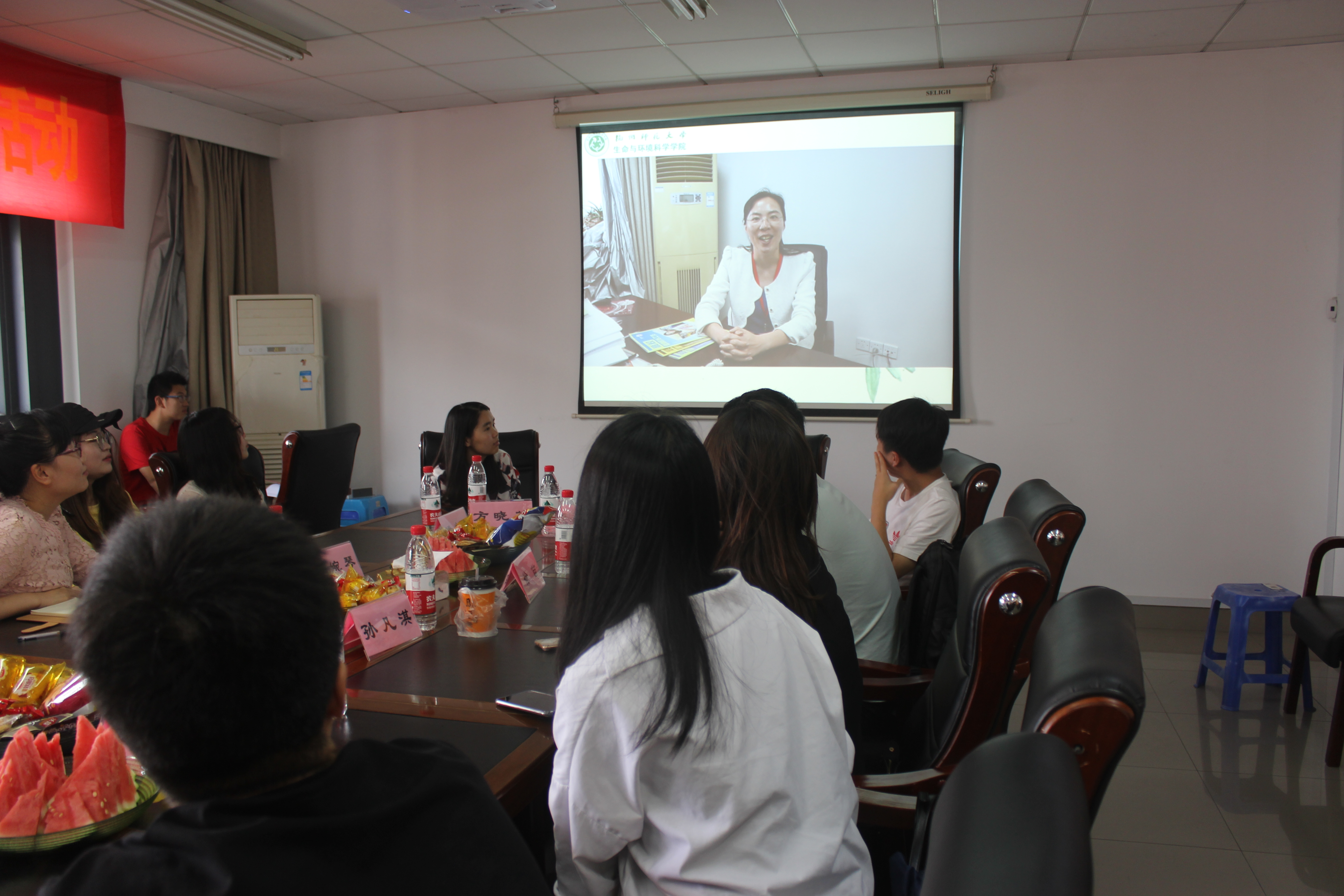 校友们一起观看视频