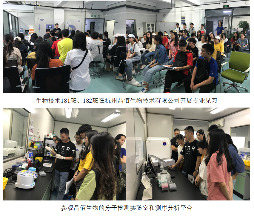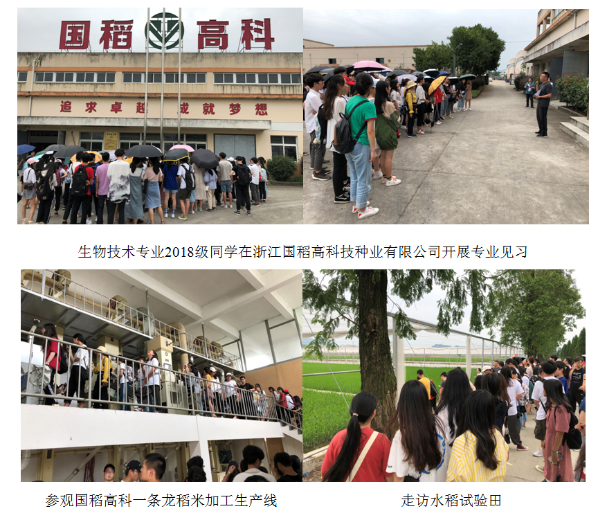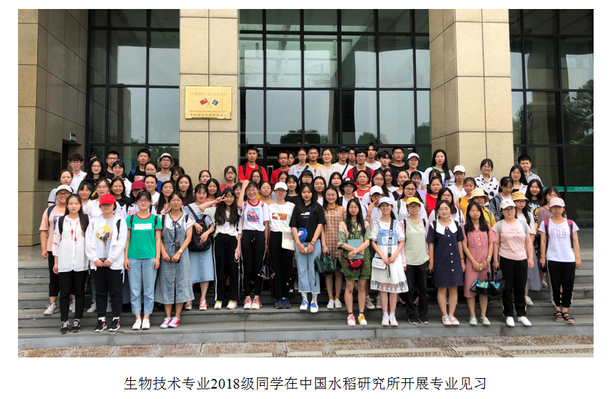 2019年7月7日至7月10日,做爱自拍 2018级生物技术专业的86名同学依次前往中国水稻研究所、浙江国稻高科技种业有限公司、杭州精准医药研究中心、杭州晶佰生物技术有限公司等专业相关单位,开展了为期4天的专业见习。学院派出了由教学院长、系主任及班主任组成的带队教师队伍。