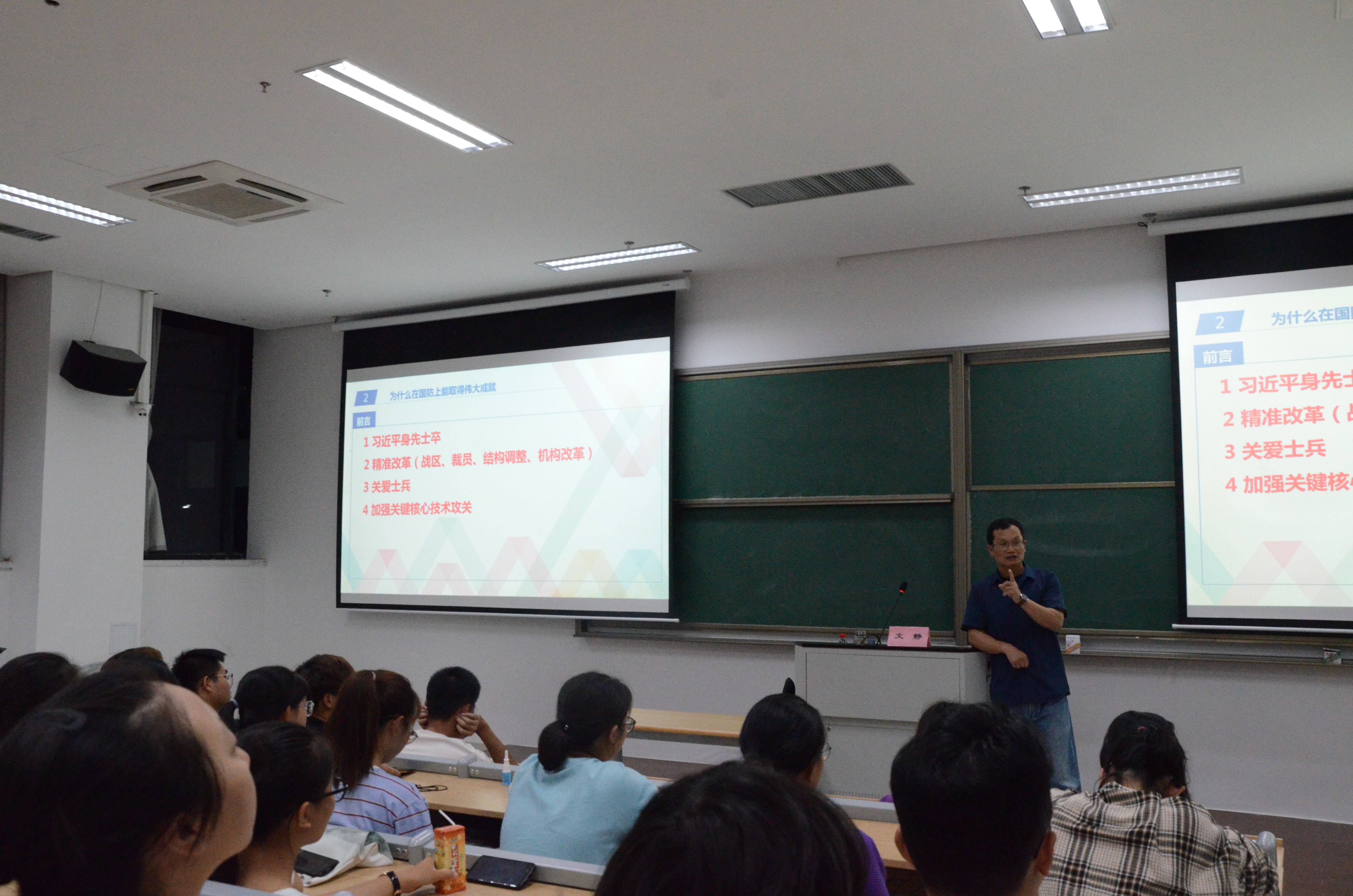 2019年9月17晚18:20,做爱自拍 面向全体大一新生于慎园1-202进行新生国防安全知识讲座。本次讲座特别邀请到体育与健康学院的文静老师。文静老师主持了校级精品课程《体育统计学》,并且文静老师是做爱自拍 17级所有班级的军事理论和国防教育的授课老师。