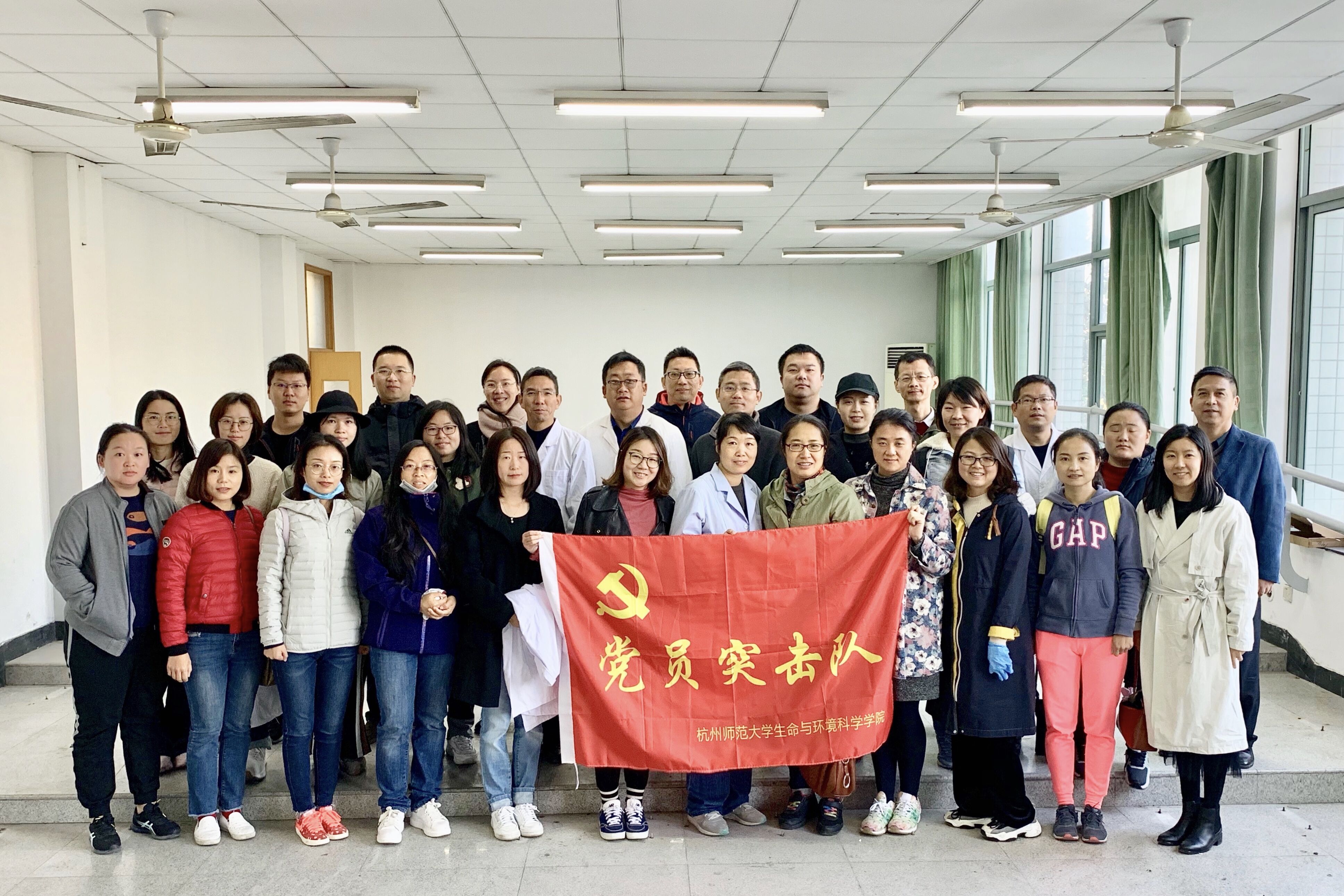 活动中,教工党员拿起扫把、畚箕等工具,到下沙各个实验室进行清扫活动,从整理废弃的试剂瓶、散落的报废设备等,回收搬迁遗漏的锥形瓶、玻璃器皿等,不放过任何死角,充分发挥了不怕脏、吃亏在前的奉献精神和勤俭节约的优良传统。
