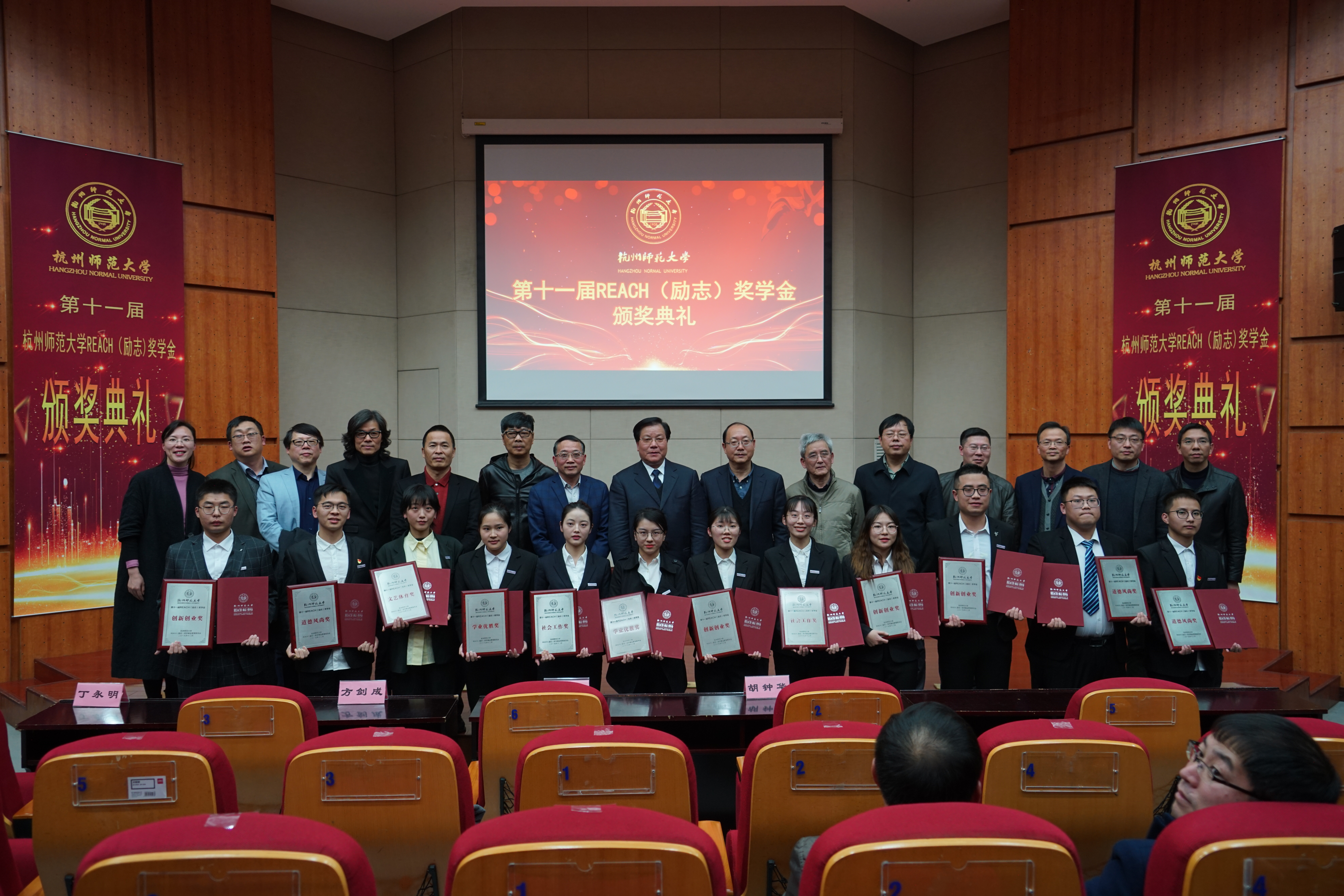 最后,嘉宾与获奖者合影留念,做爱自拍 第十一届REACH(励志)奖学金颁奖典礼圆满结束。REACH精神如永不熄灭的火焰,激励着一代又一代杭师大学子努力拼搏,在追逐梦想的道路上永不停歇!