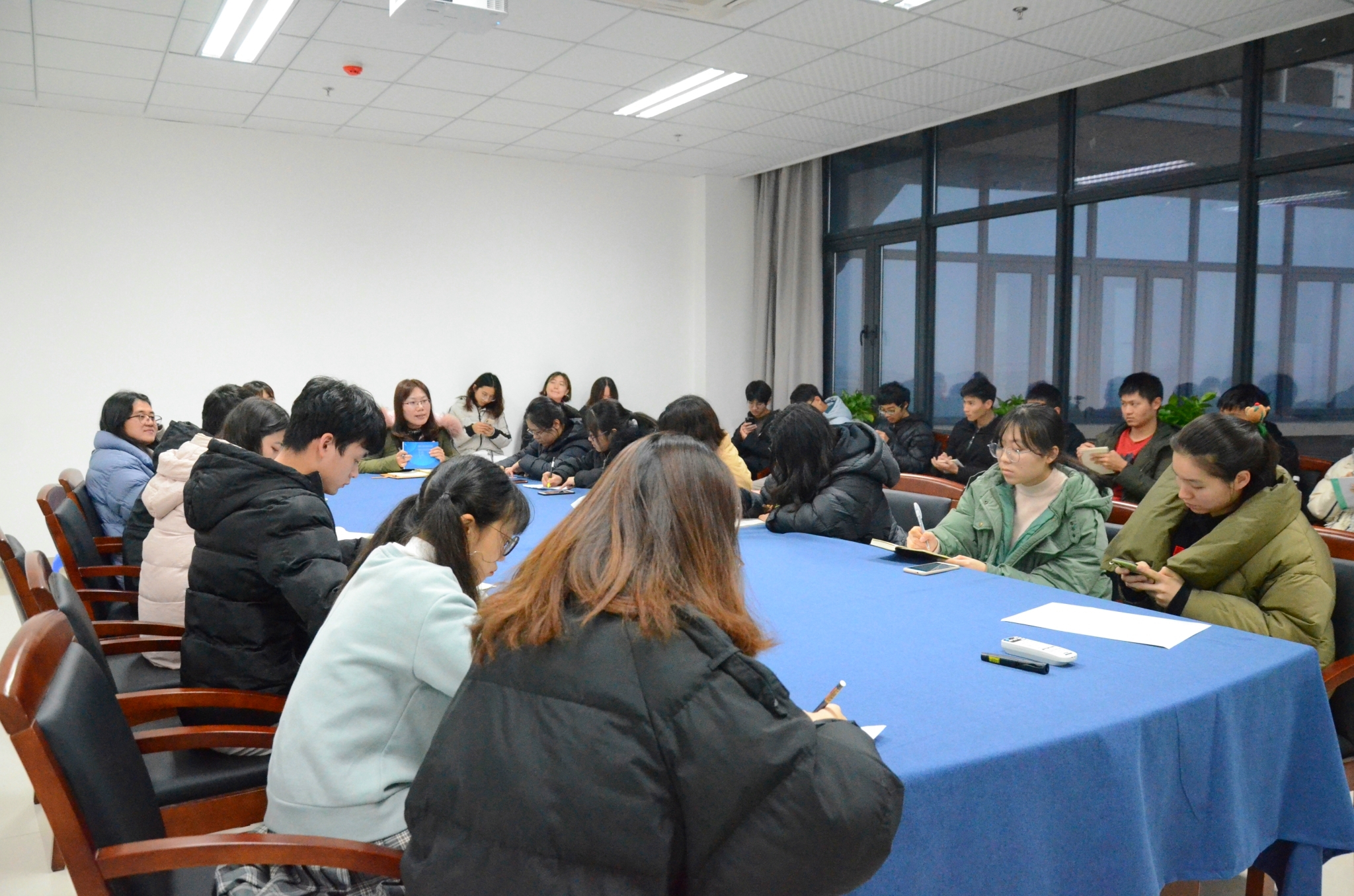 2019年12月25日下午4:30,做爱自拍 于慎园15-313召开班团例会,大一至大四各班班长、团支书参加本次会议,会议由倪雅老师、陈好老师和吕京京老师主持。