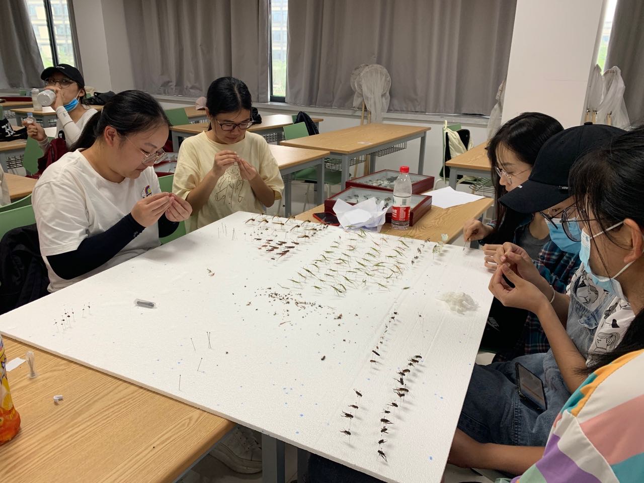 在动物学野外实习中,同学们观察了校内环境里,以及护校河、余杭塘河常见动物的种类、形态及分布规律,如昆虫、鸟类、小型兽类、两栖爬行类,鱼类、螺类等等,同时观察其生境特点;学会了动物尤其是昆虫类的采集、麻醉等标本制作方法,结合分类检索表和所学理论知识,进一步辨识和明晰了所制作标本的动物种类,初步熟悉了动物学野外实习工作的基本过程。在教师带领下,全体同学还在参观了学院的动物标本馆,认知和掌握了标本馆内一些高等哺乳动物的基本特征和生理习性。
