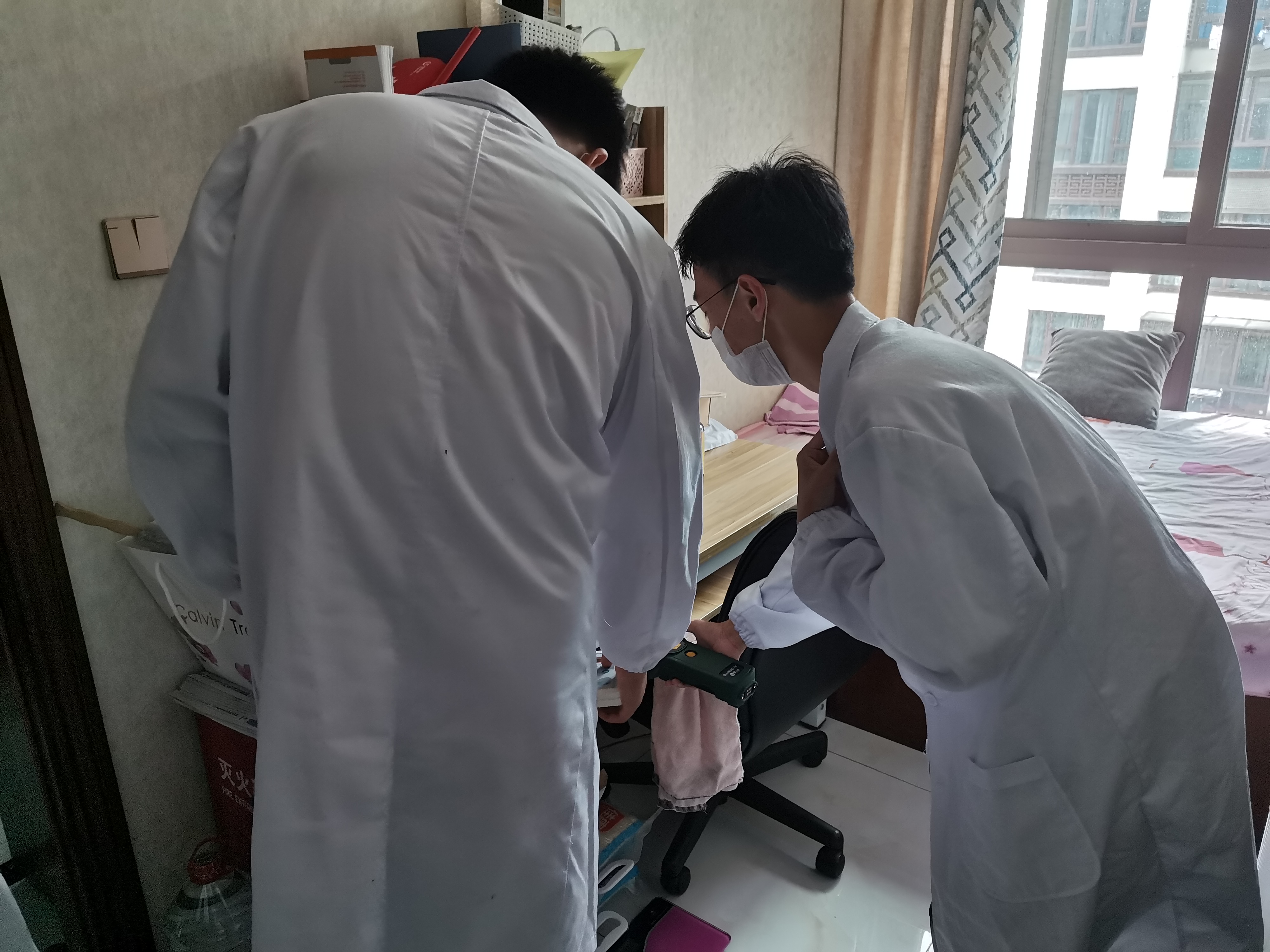 在对教师家庭空气质量数据归纳整理后。我们发现新装修的房间,甲醛含量在狭小空间(如柜子,储物间)容易超标,而在总空间(如客厅,卧室)内是往往是正常指标,这表明室内的甲醛往往是来自于衣柜等木质家具。在入住的房间内,甲醛含量往往在那些不常打开且通风不便的地方超标。基于这些,我们向老师提出要多开柜通风,买一些活性炭包,甲醛吸附剂来降低甲醛的含量并合理更换的建议。另外,我们发现在甲醛超标的地方,有机物挥发气体指标往往也超标。这意味着我们不能仅凭借闻空气中的气味来判断甲醛含量是否超标。在等待空气质量检测结果期间,小分队的成员们向教师普及了关于甲醛等室内空气有毒成分的知识。