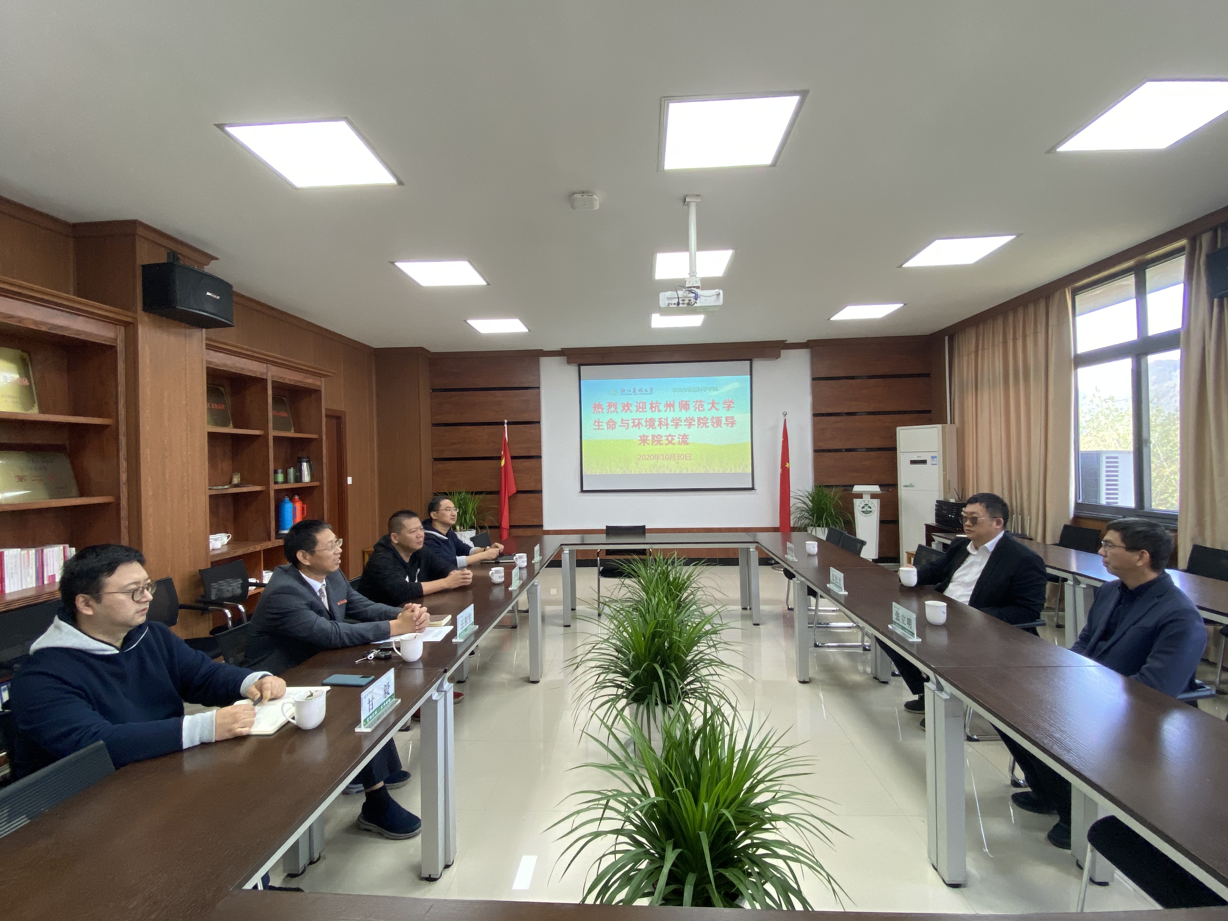 10月30日上午,学院执行院长张杭君、党委书记张立明等赴浙江农林大学农业与食品科学学院交流考察,浙江农林大学农业与食品科学学院党委书记汪和生、副院长王华森等接待并组织交流座谈会。