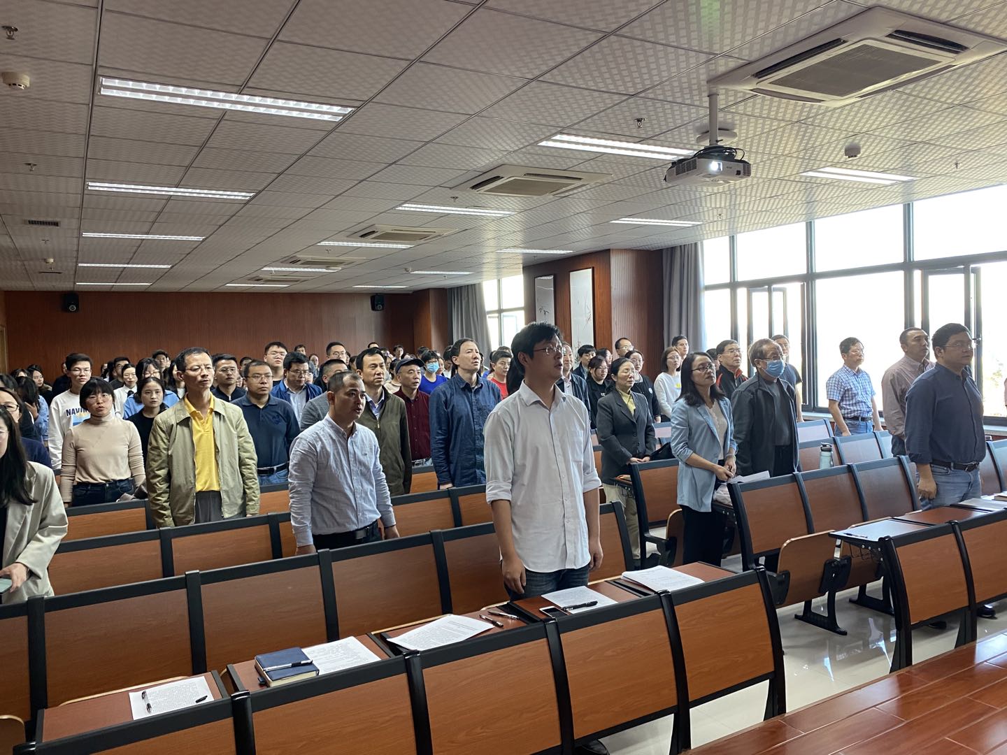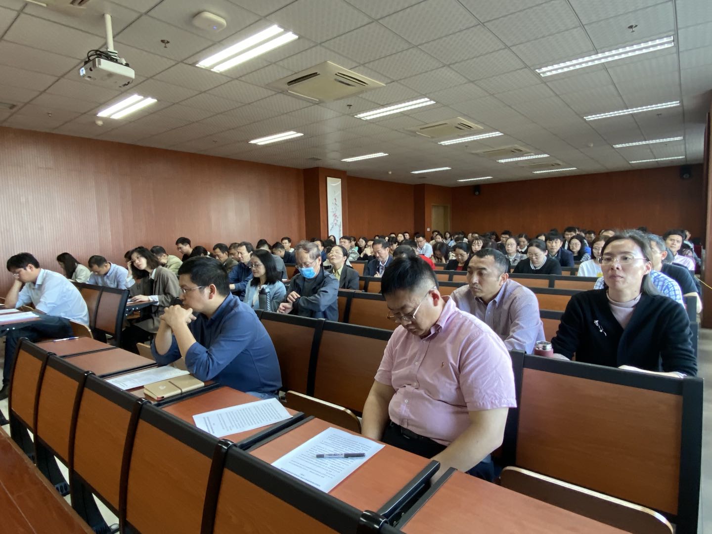 11月18日下午,做爱自拍 党委在慎园15-309召开学院全体正式党员大会。会议由党委书记张立明主持,学院教工正式党员、学生正式党员和离退休党员共129人参加了会议。