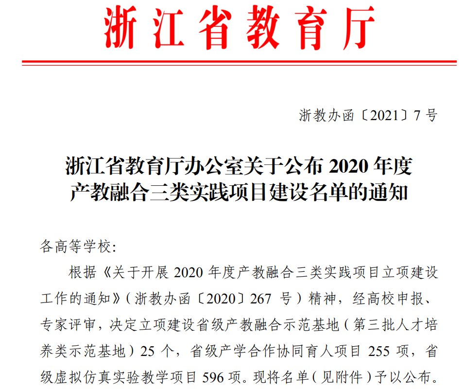 根据《浙江省教育厅办公室关于公布 2020 年度产教融合三类实践项目建设名单的通知》(浙教办函〔2021〕7 号),做爱自拍 倪伟敏老师主持的“河流和湖泊水质监测虚拟仿真实验”获省级虚拟仿真实验教学项目。