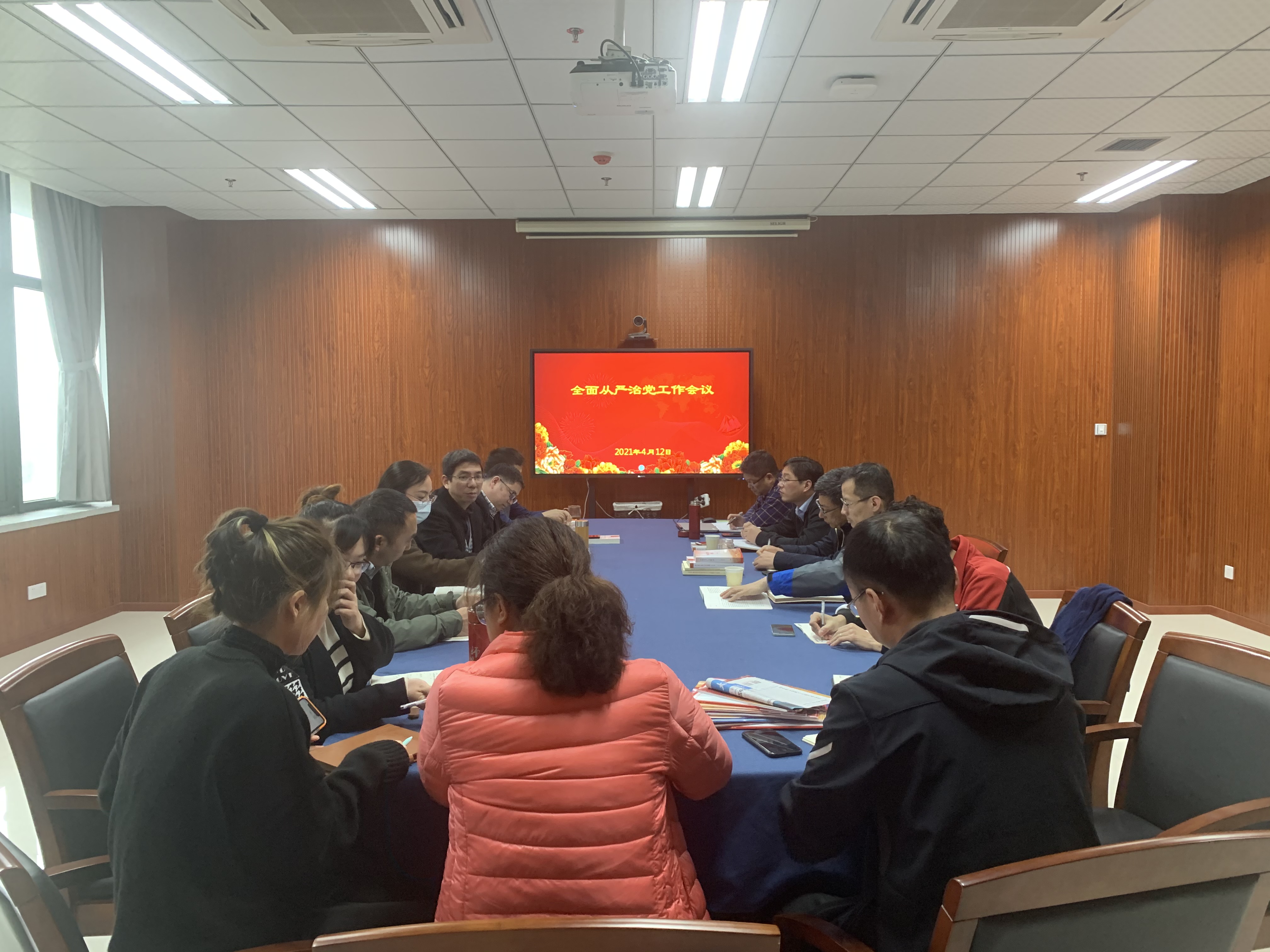 4月12日,做爱自拍 召开全面从严治党工作会议,深入学习贯彻2021年全省教育系统全面从严治党工作视频会议精神,学院领导班子和党支部书记参加会议,会议由党委书记张立明主持。
