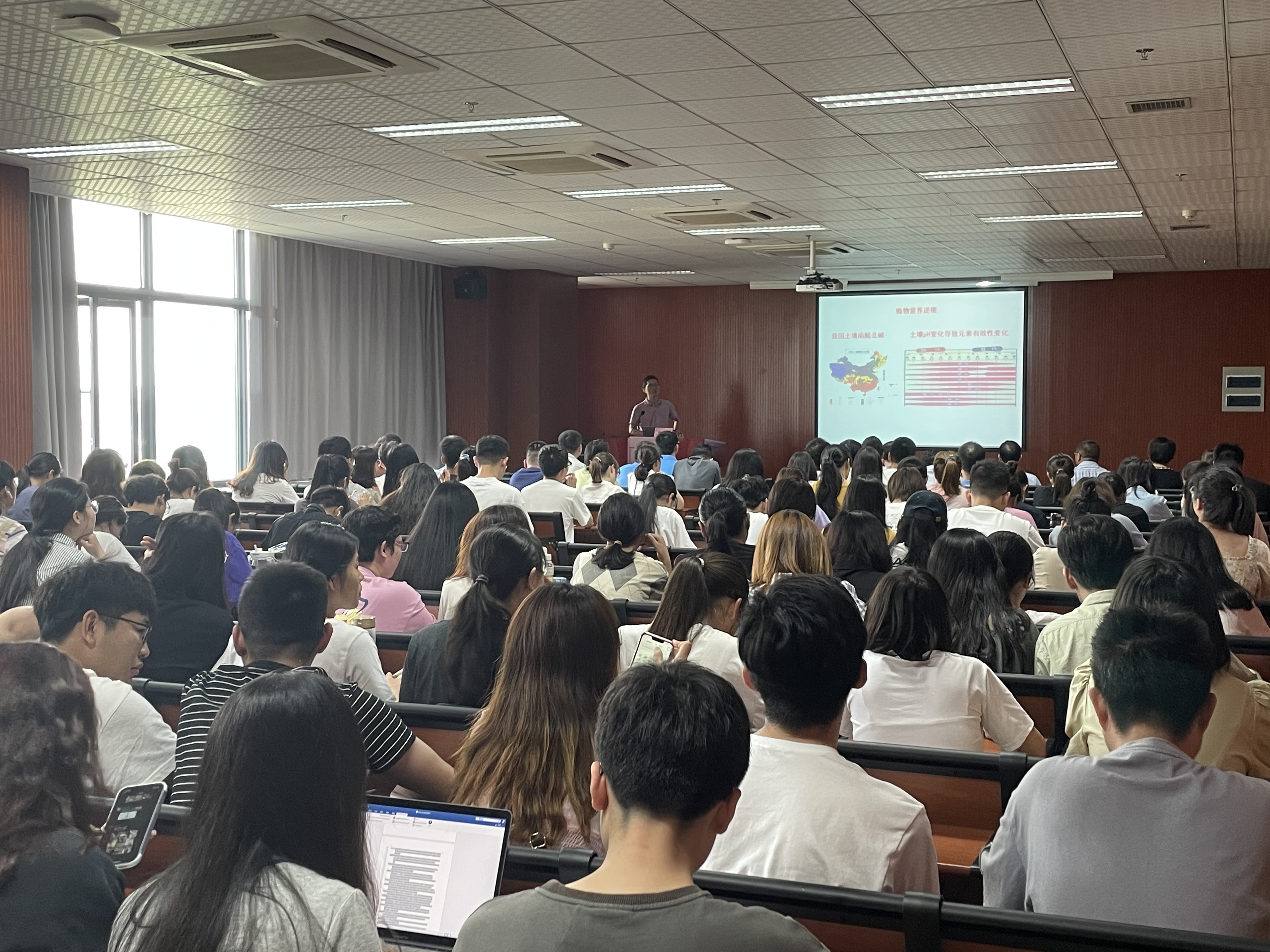 在报告中,杨建立教授从铝毒和缺铁是两种主要的植物营养逆境展开讲述,讲解了铝对植物的毒害机制,阐述了植物存在铝毒或耐铝基因型差异及植物耐铝机制,并详细介绍了细胞壁及有机酸代谢和分泌在作物抗铝中的作用。学院一百五十余名相关研究领域的师生认真聆听了本次报告。报告结束后,师生们就相关学术问题和杨建立教授进行了积极的讨论与交流。