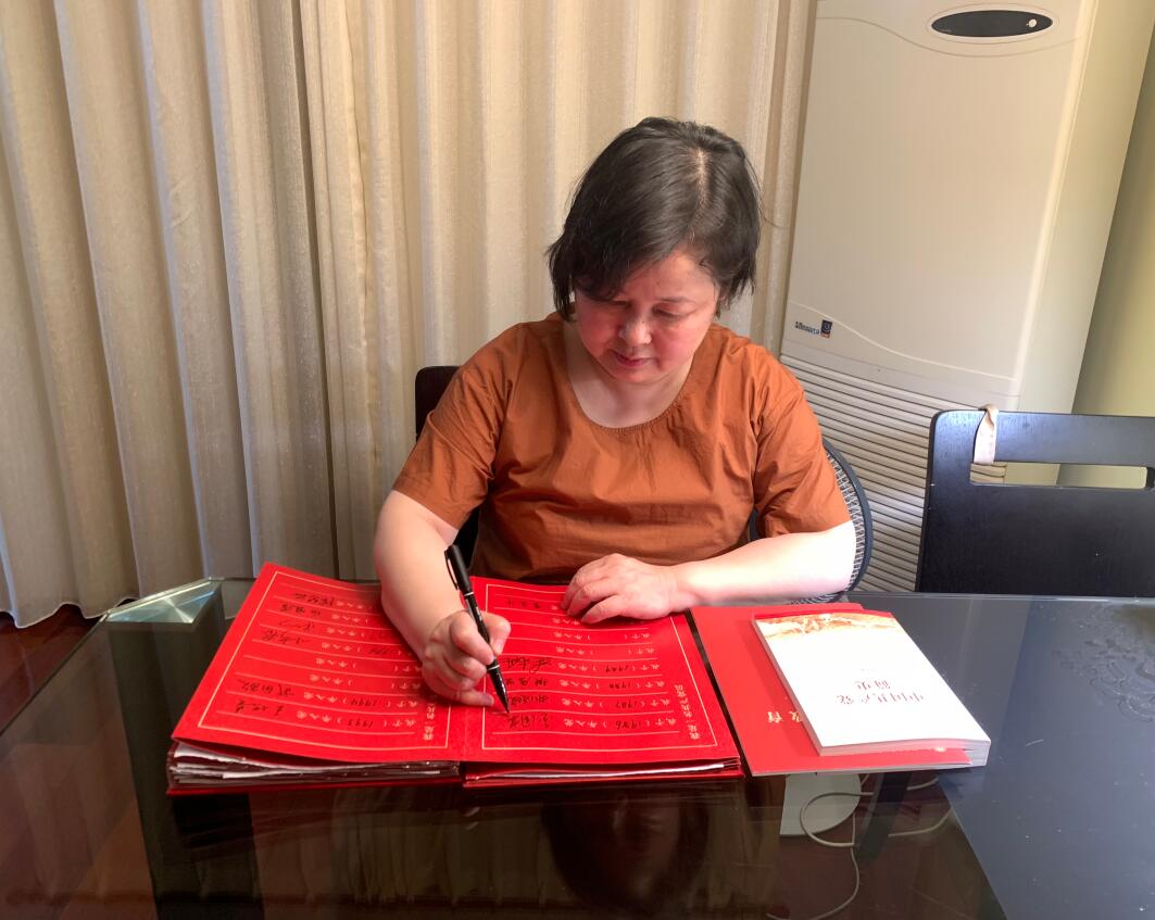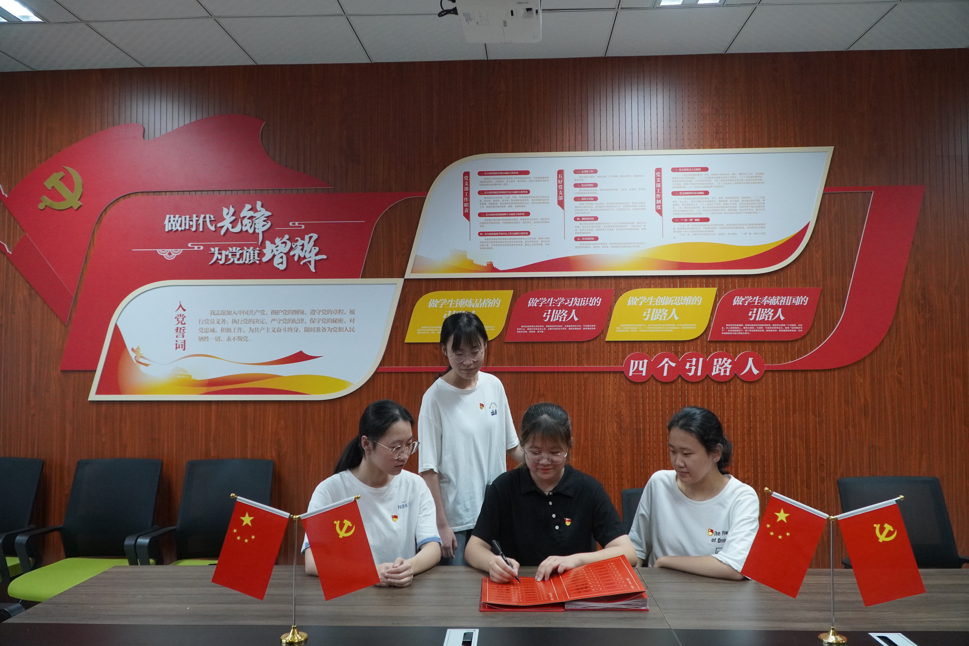 学生党员在签名册上签字