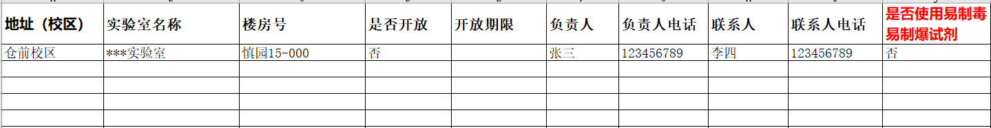 请各位老师及时填报,特别是表格中“是否使用易制毒易制爆试剂”一栏,请根据课题安排做好提前规划,如实填报,谢谢。