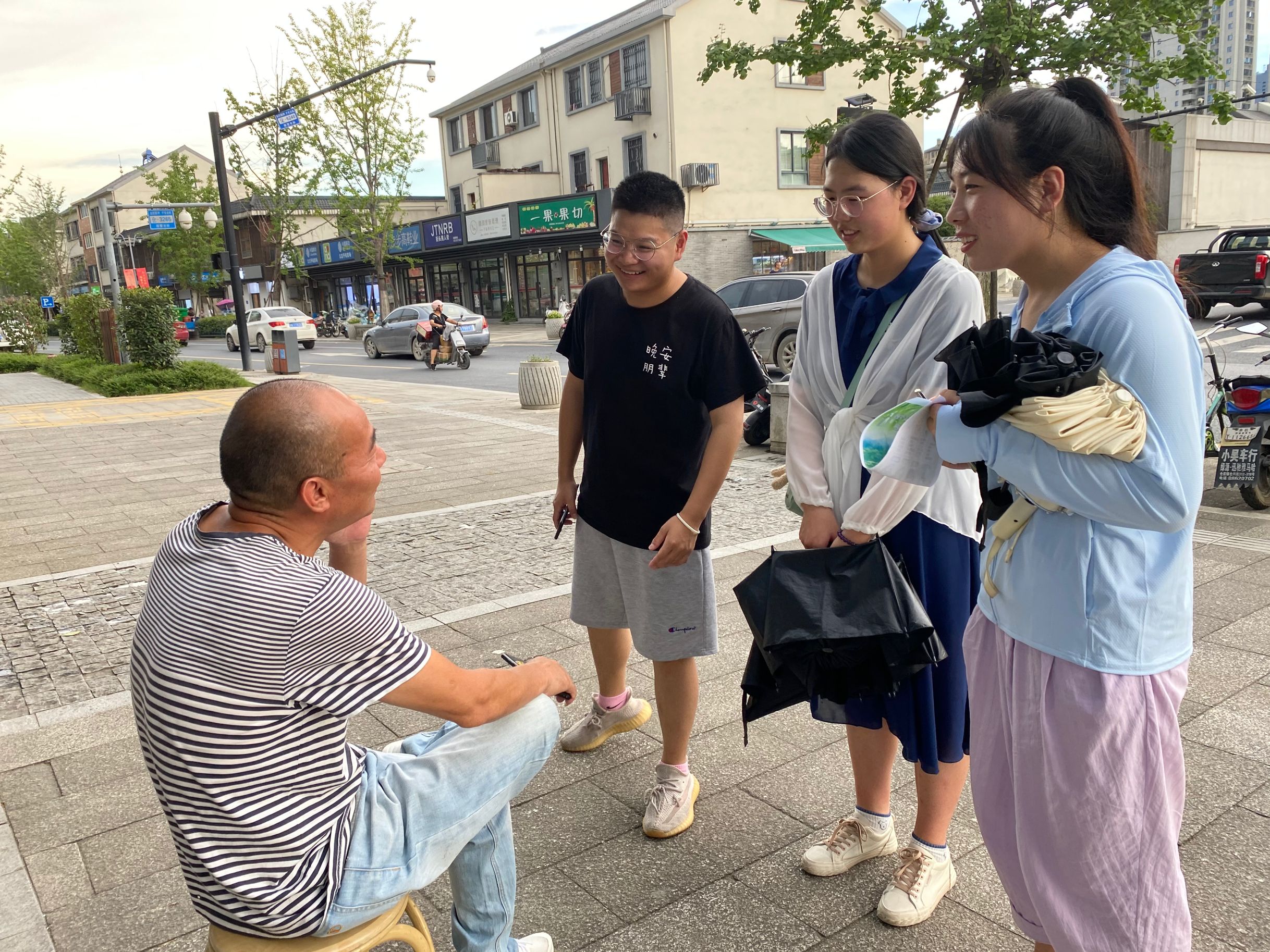 2021年7月7日,做爱自拍 垃圾分类社会实践小队四位成员前往仓前街道梦想小镇进行有关垃圾分类的采访和调查。