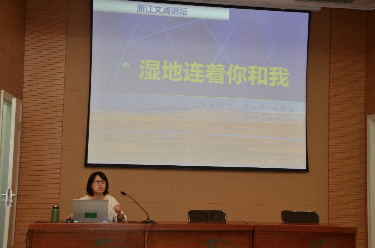 7月14日上午,同学们到达了中国湿地博物馆,依次参观世界湿地馆、中国湿地馆、西溪湿地馆。讲解员详细讲解了湿地的起源、种类以及在人类生存发展中的重要性。同学们参观了馆内模拟的各种湿地,了解了各种湿地植物和动物。随后,中国湿地博物馆的缪丽华研究员为同学们开展了湿地知识的讲座,详细介绍了湿地的定义、特点以及类型。应同学们的要求,缪丽华老师还详细介绍了已开放的中国湿地植物数据库,数据库的使用方法,相关植物的分门别类,缪老师都一一进行了介绍。最后缪老师呼吁大家积极参与数据库的补充工作,希望大家都能利用所学知识贡献一份自己的力量。
