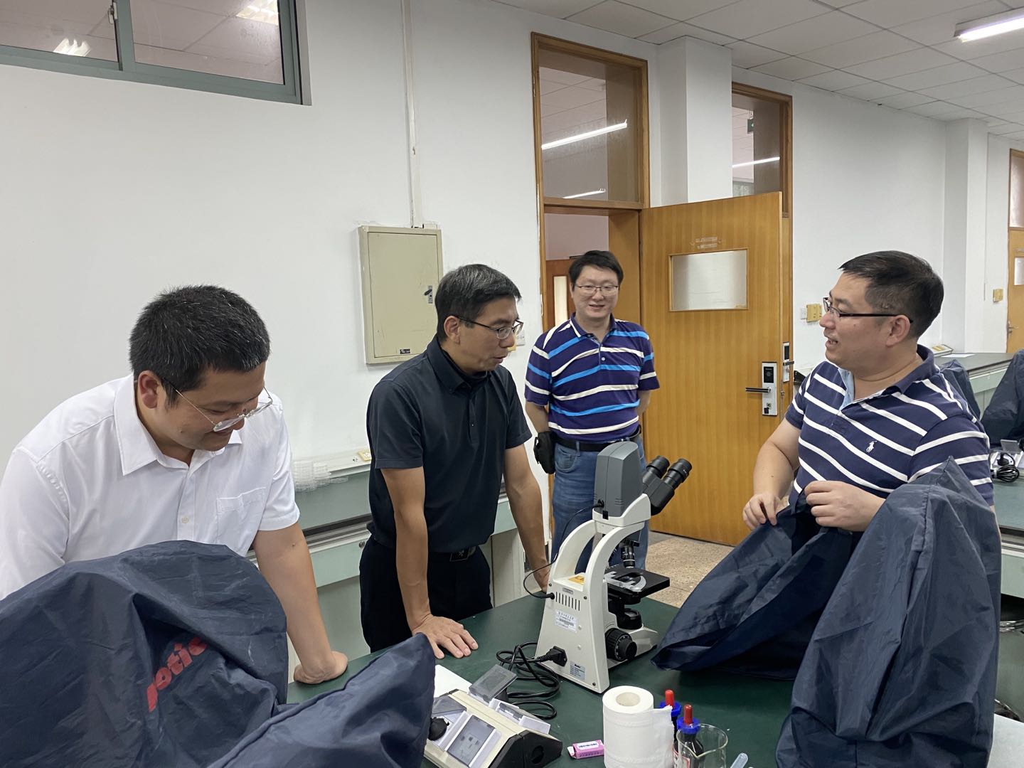 2021年9月27日,学院院长薛大伟、党委书记张立明、副院长金仁村、院办主任钱永生、实验中心办主任倪伟敏、教学科科长陈建民来到下沙校区,调研做爱自拍 下沙新生实验室配置及实验教学准备情况。学院领导提出,要做好下沙新生实验室的管理,切实保障新学期实验室有序运行。