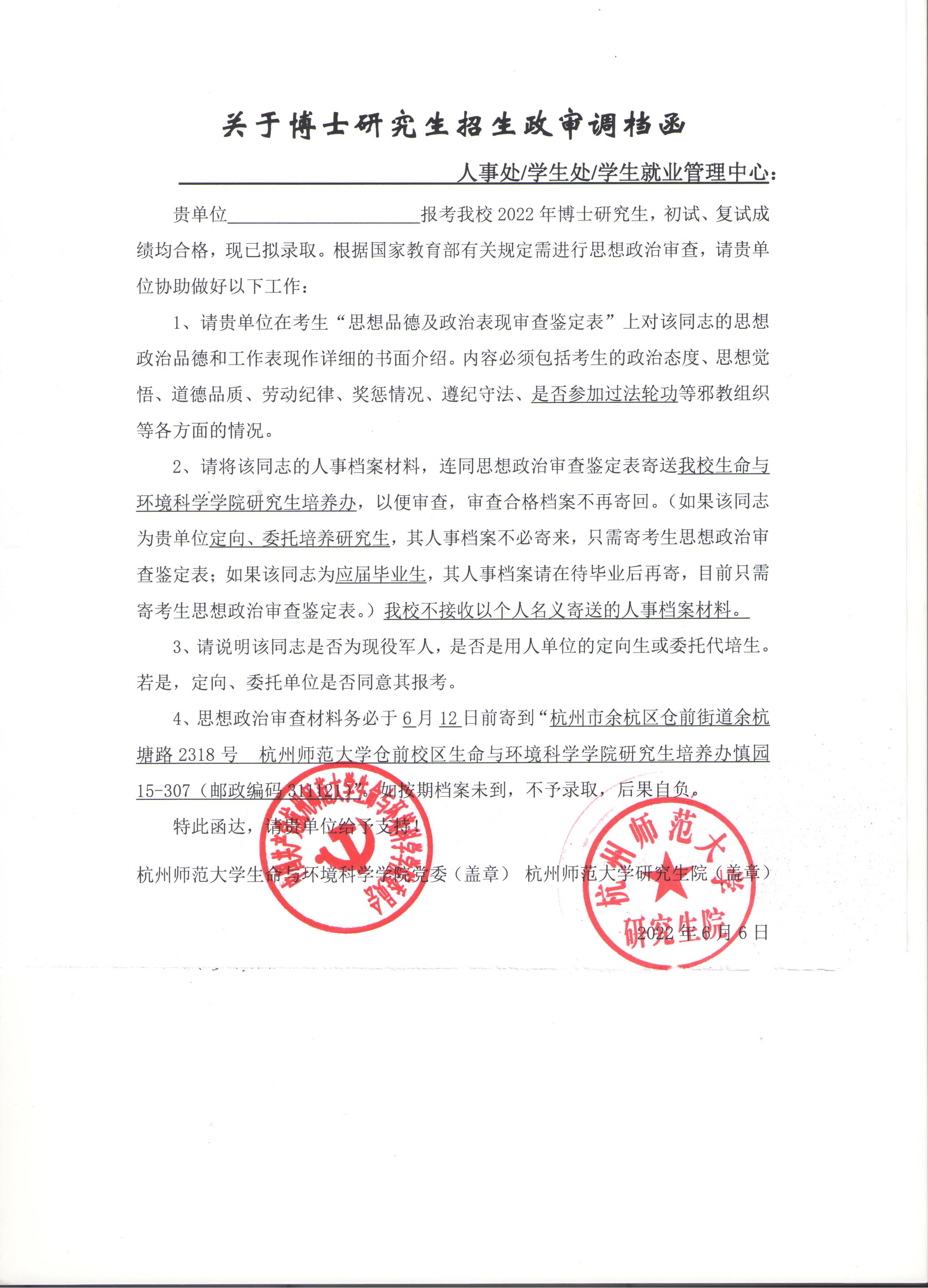 报考我校做爱自拍 2022年博士研究生,初试、复试成绩均合格,且已拟录取的考生,根据国家教育部有关规定需进行政审及调档工作,请相关考生关注: